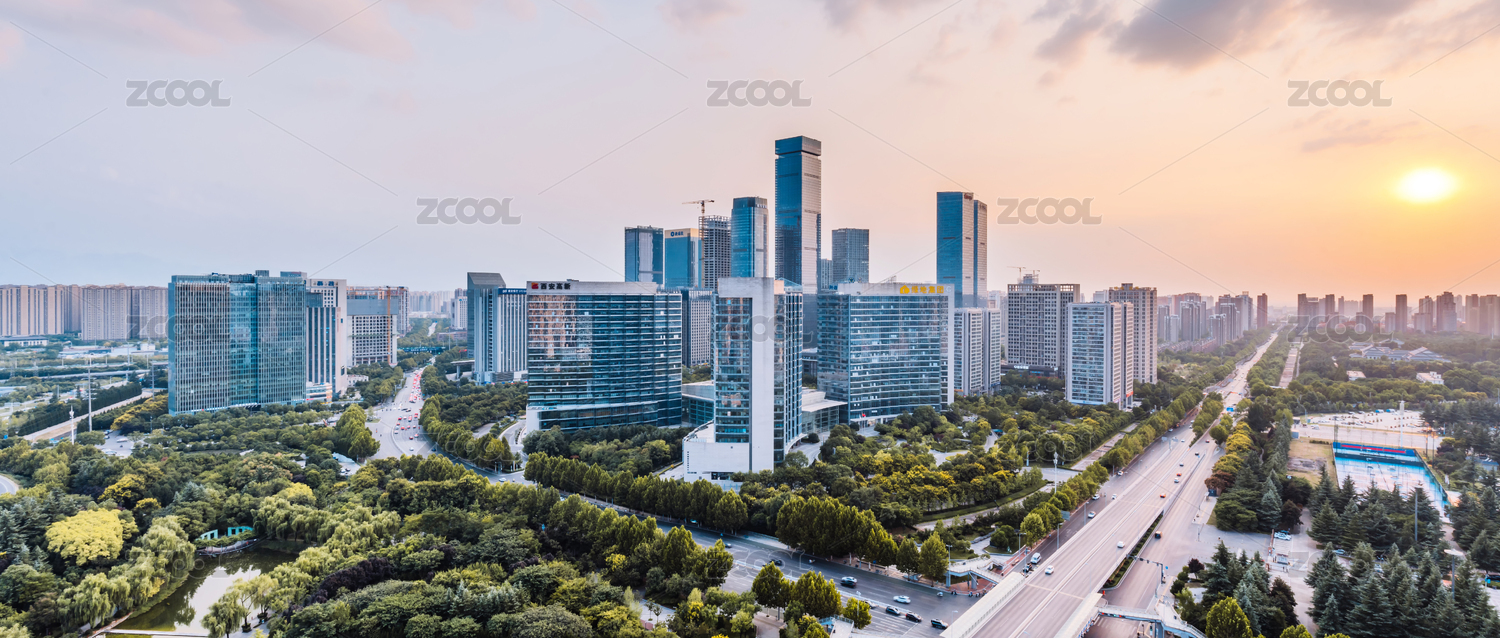 中国陕西西安高新CBD城市天际线黄昏风光