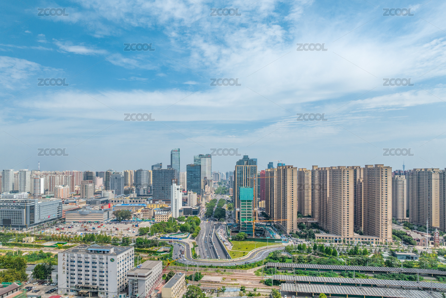 西安,CBD,航拍,天际线,城市,都市风景,都市风光,立交桥,路,高架桥