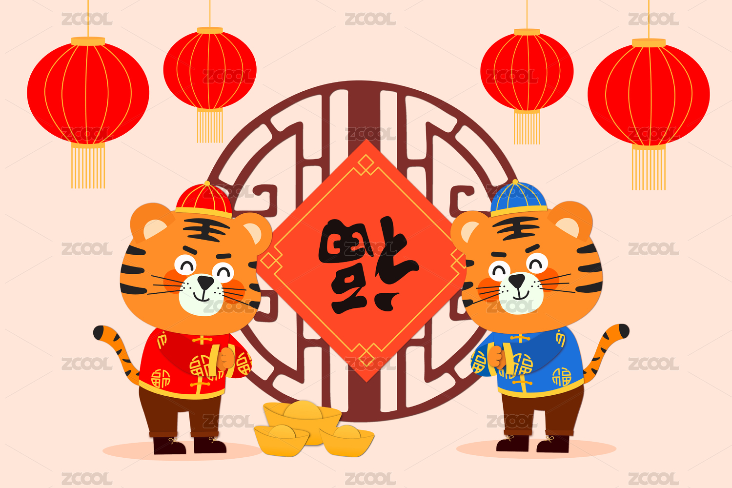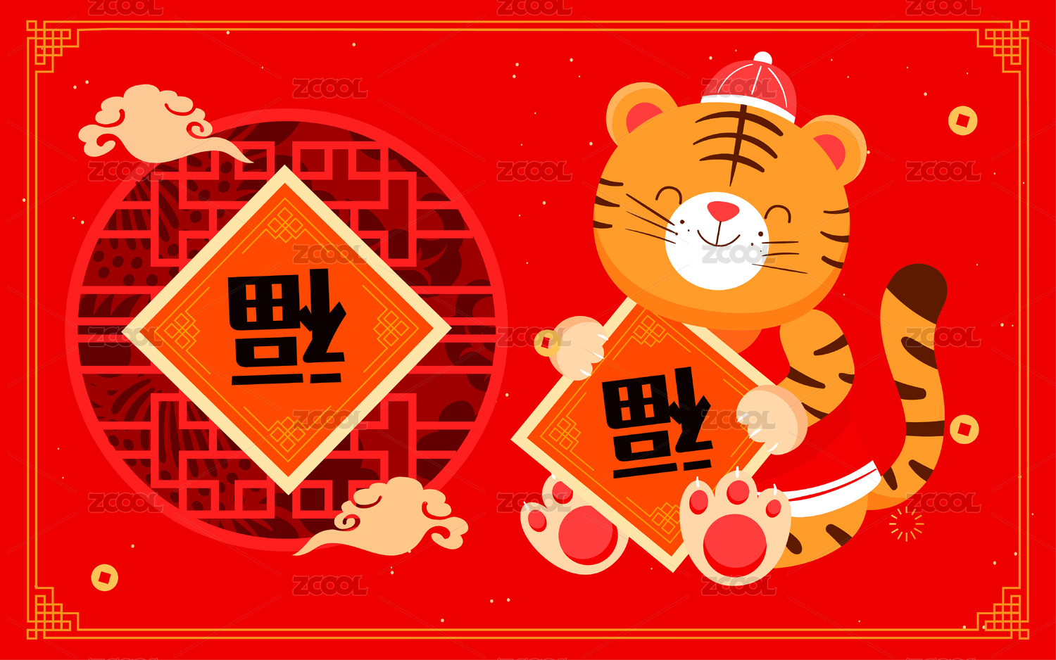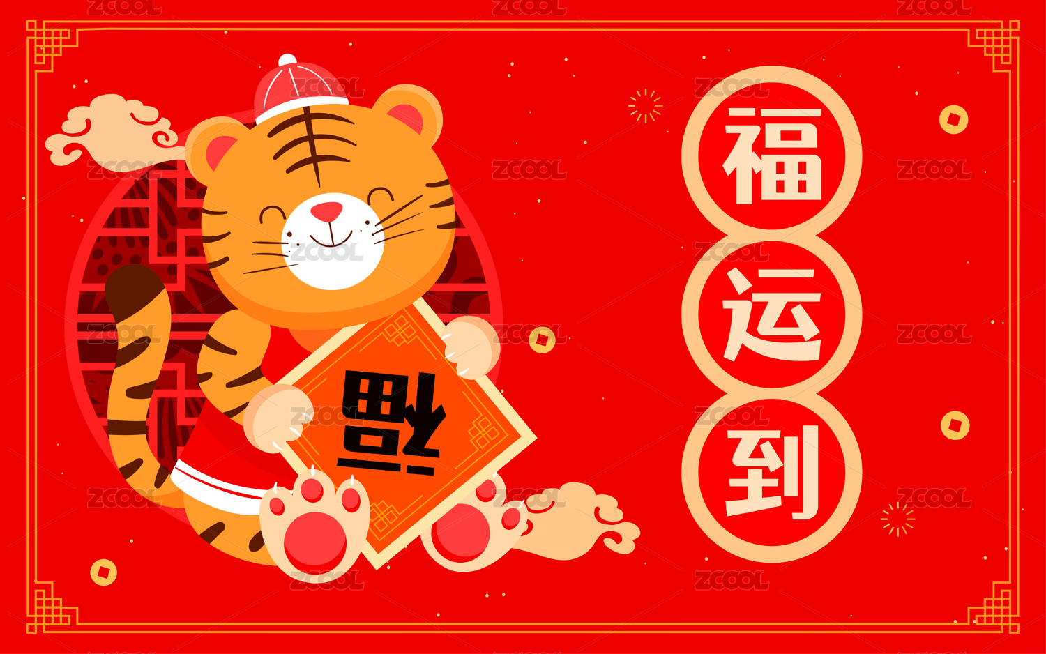 新春虎年祝福新年福星高照国潮矢量插画