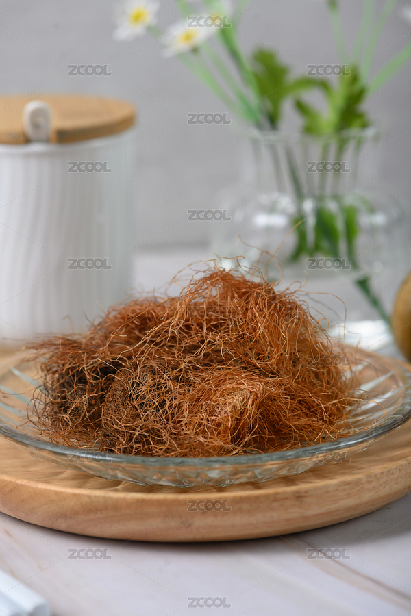 桌面上的盘子里的干爽清香的玉米须