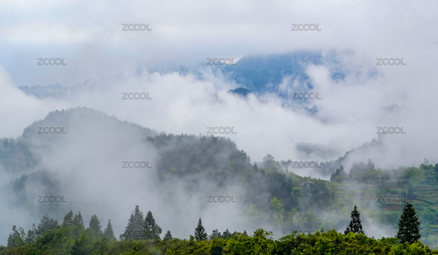 夏季晨雾中的重庆綦江区石林镇自然风光