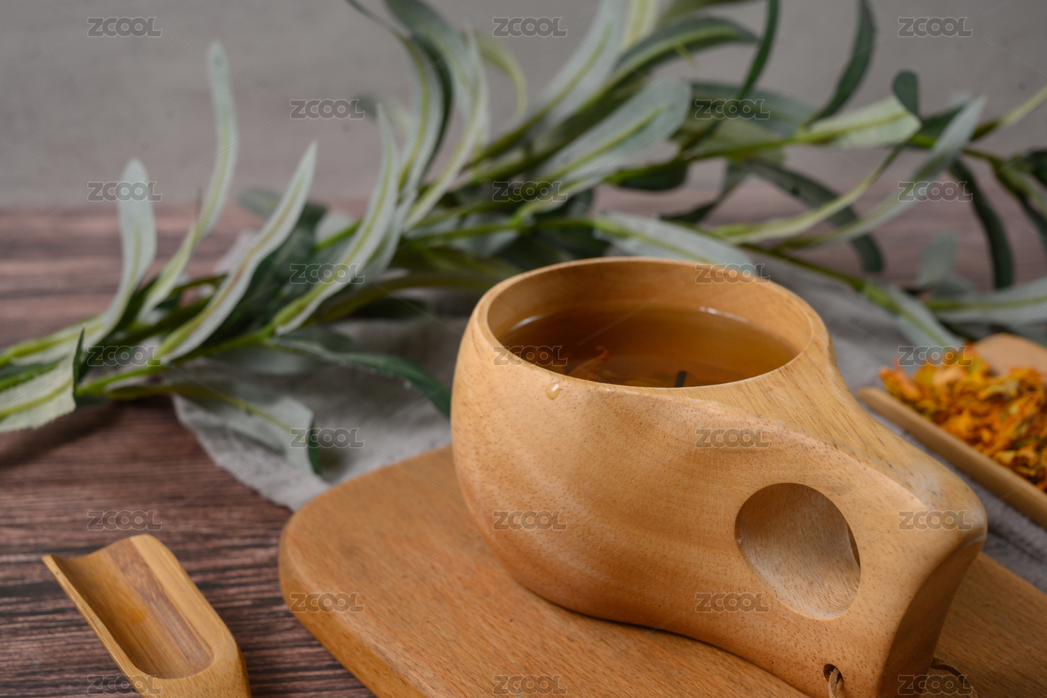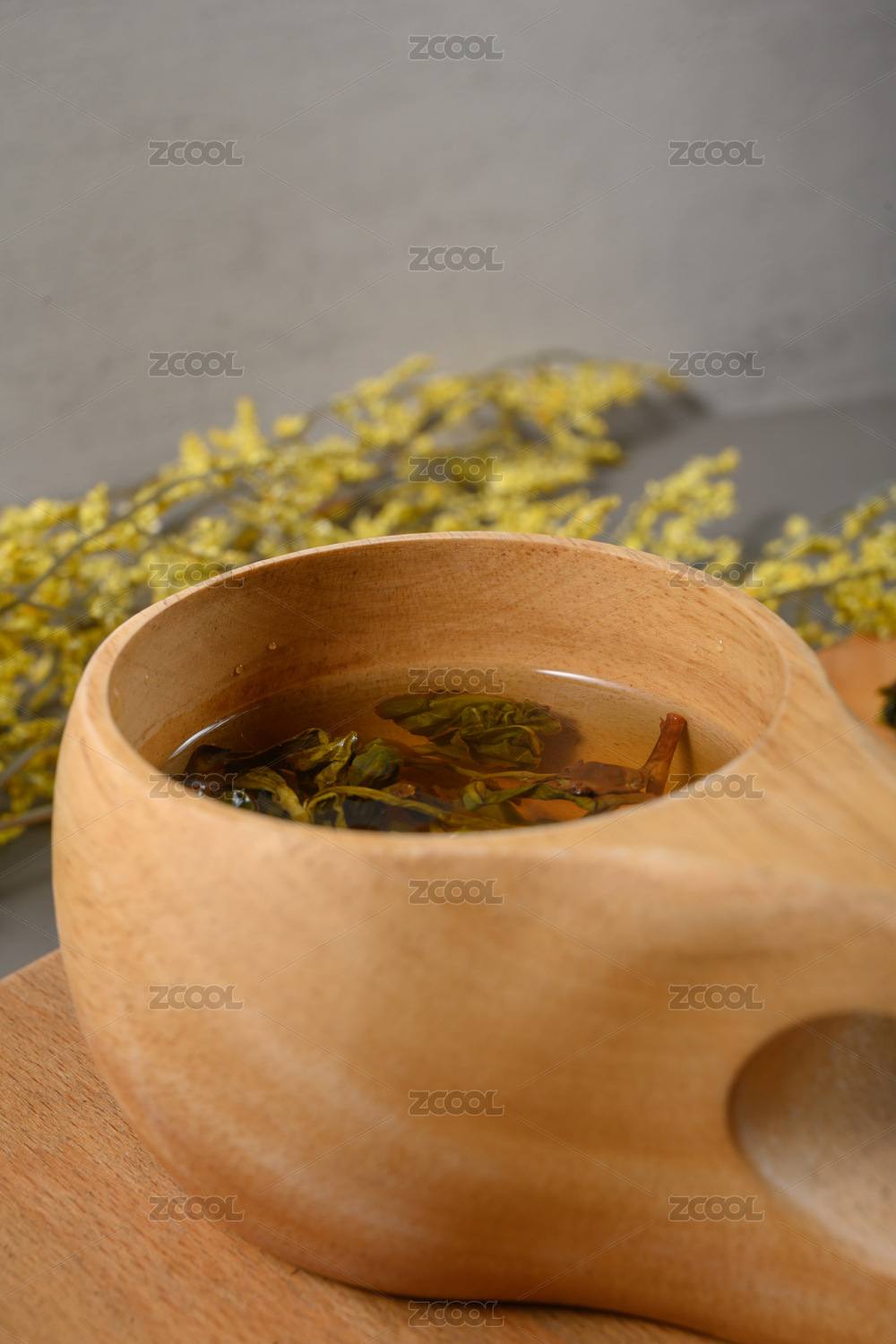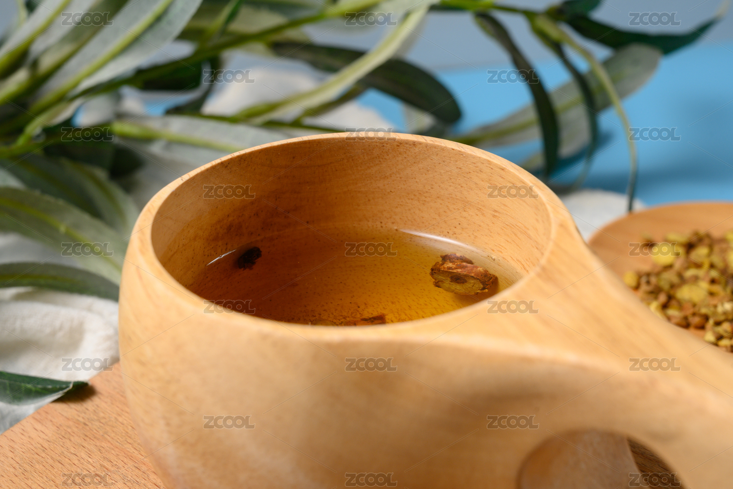 桌面上个的杯子里的甘甜可口的龙胆草茶