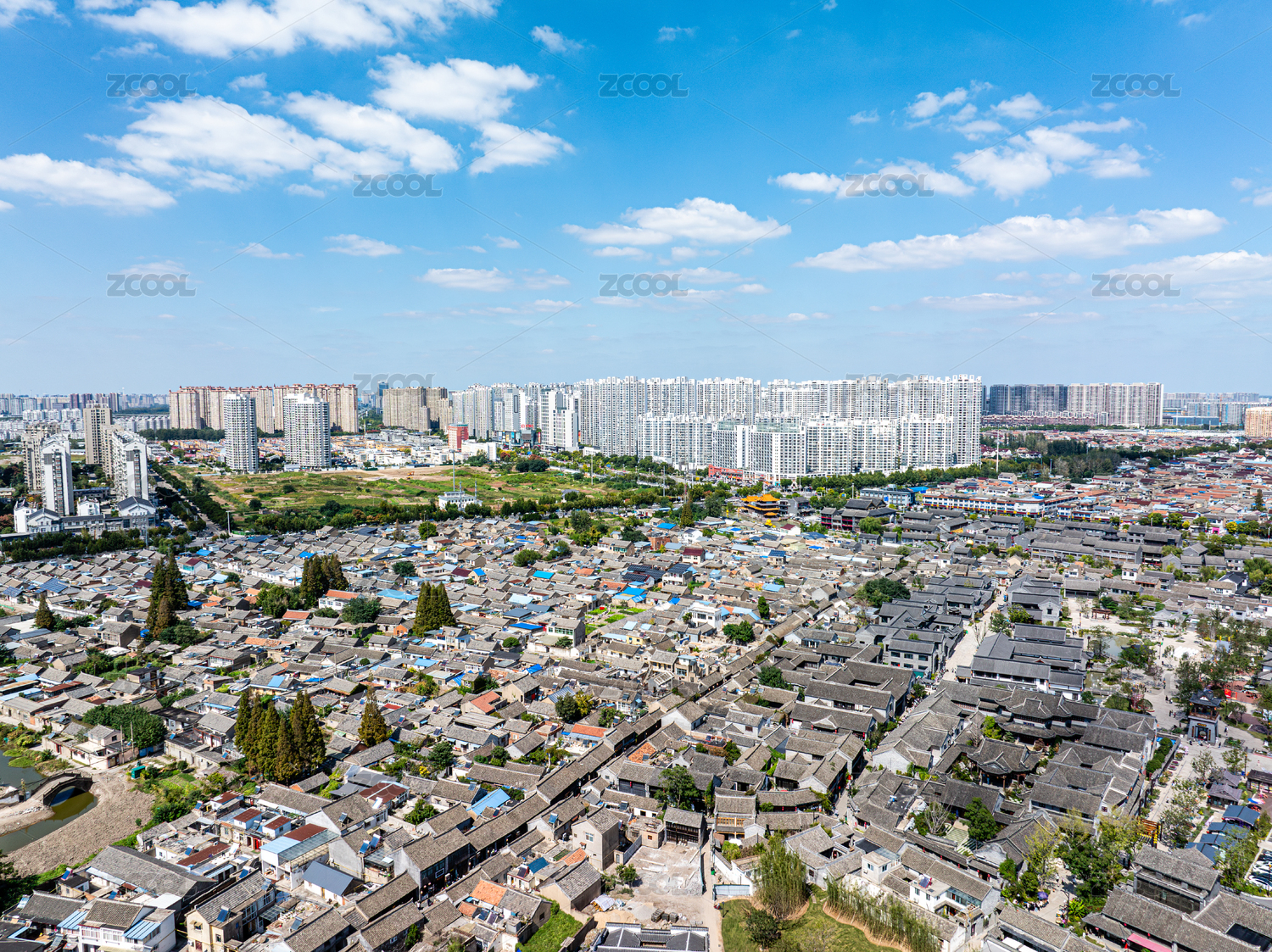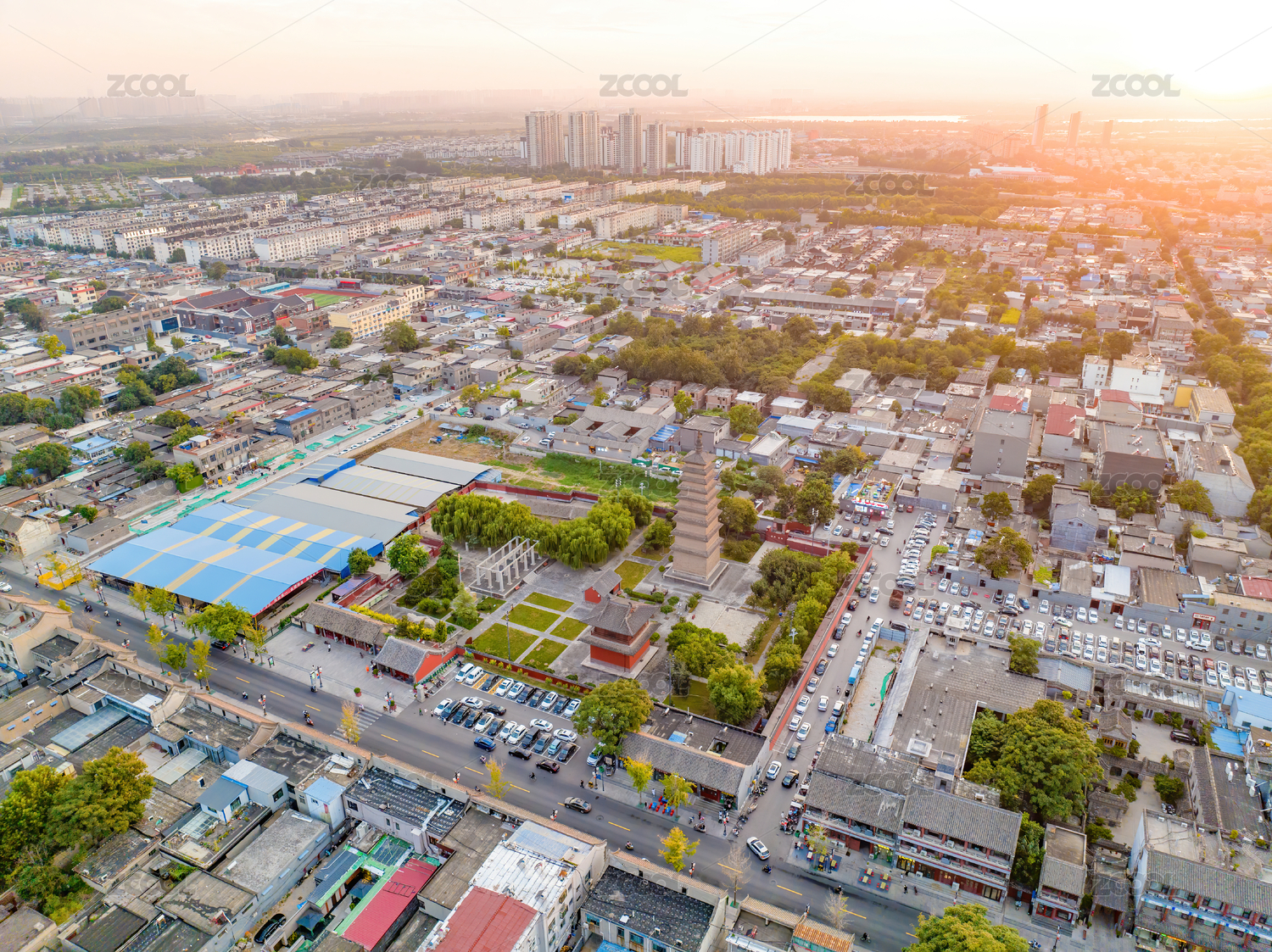 航拍河北省石家庄市正定县开元寺和须弥寺