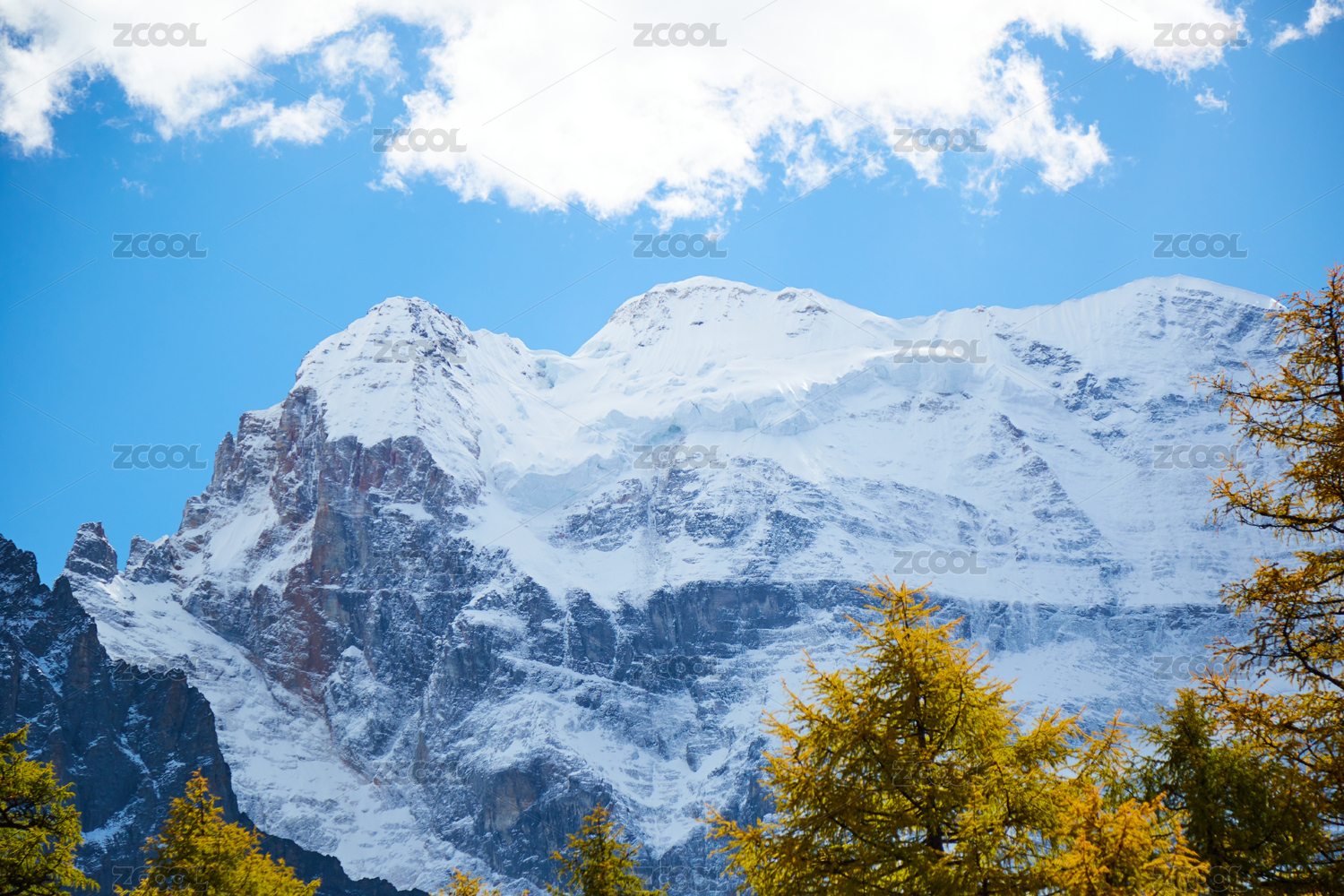 四姑娘山双桥沟景区雪山晴空蓝天白云