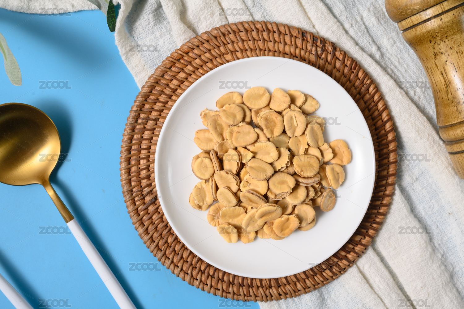 桌面上的盘子里的美味可口的鹰嘴豆片