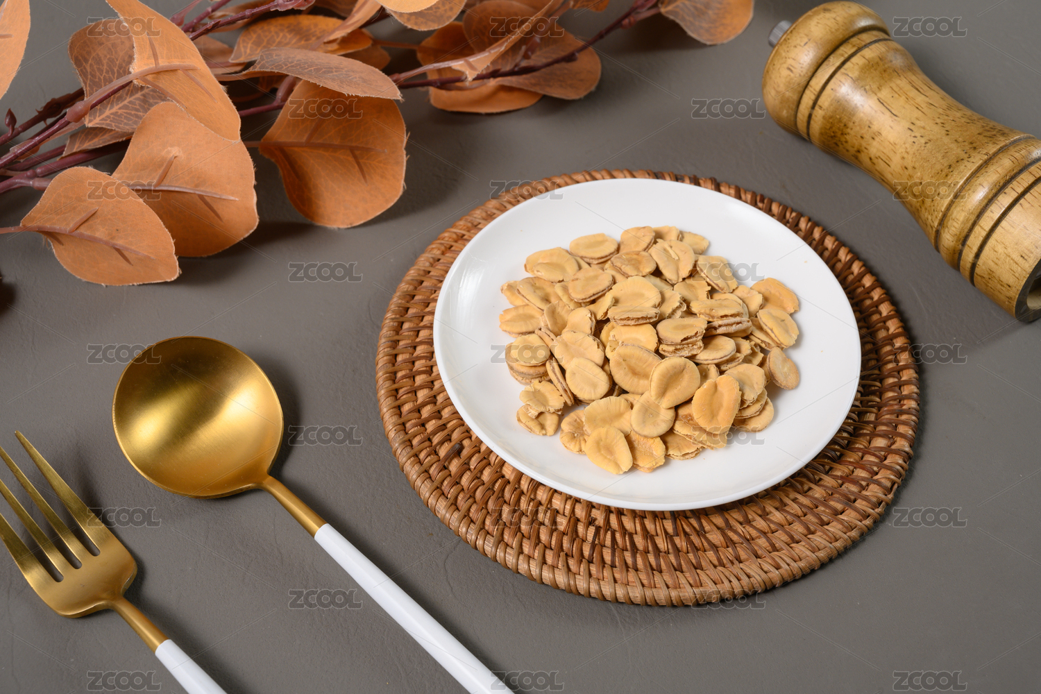 桌面上的盘子里的美味可口的小米锅巴