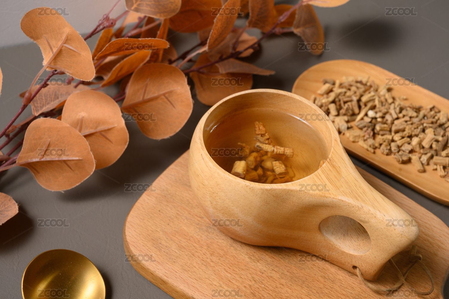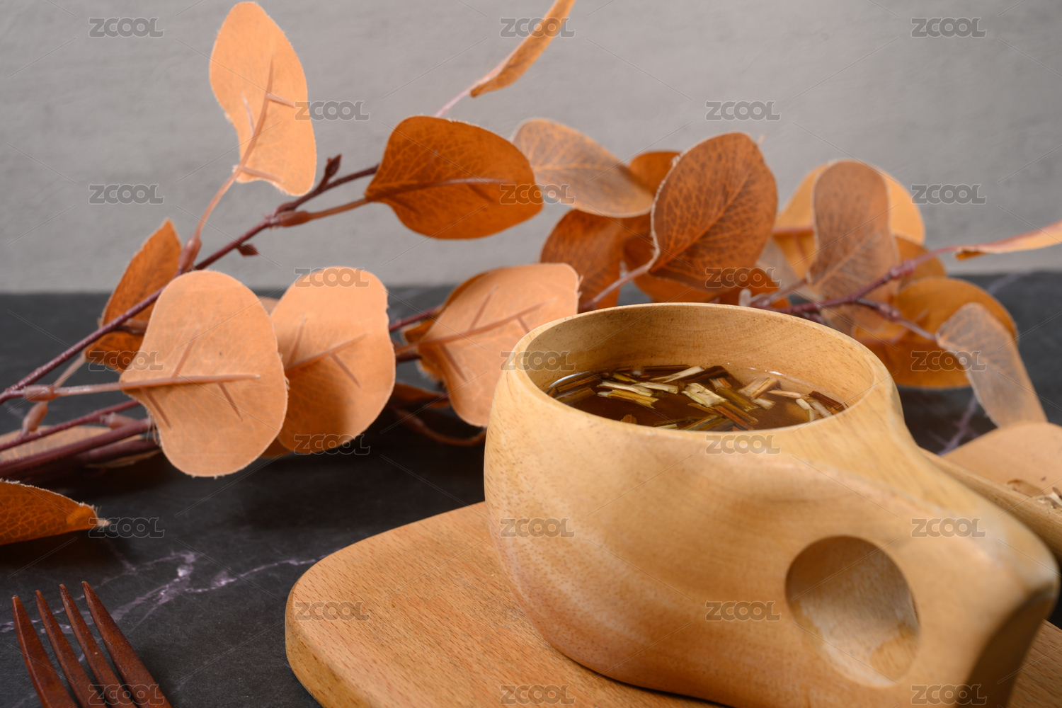 桌面上个的杯子里的甘甜可口的龙胆草茶