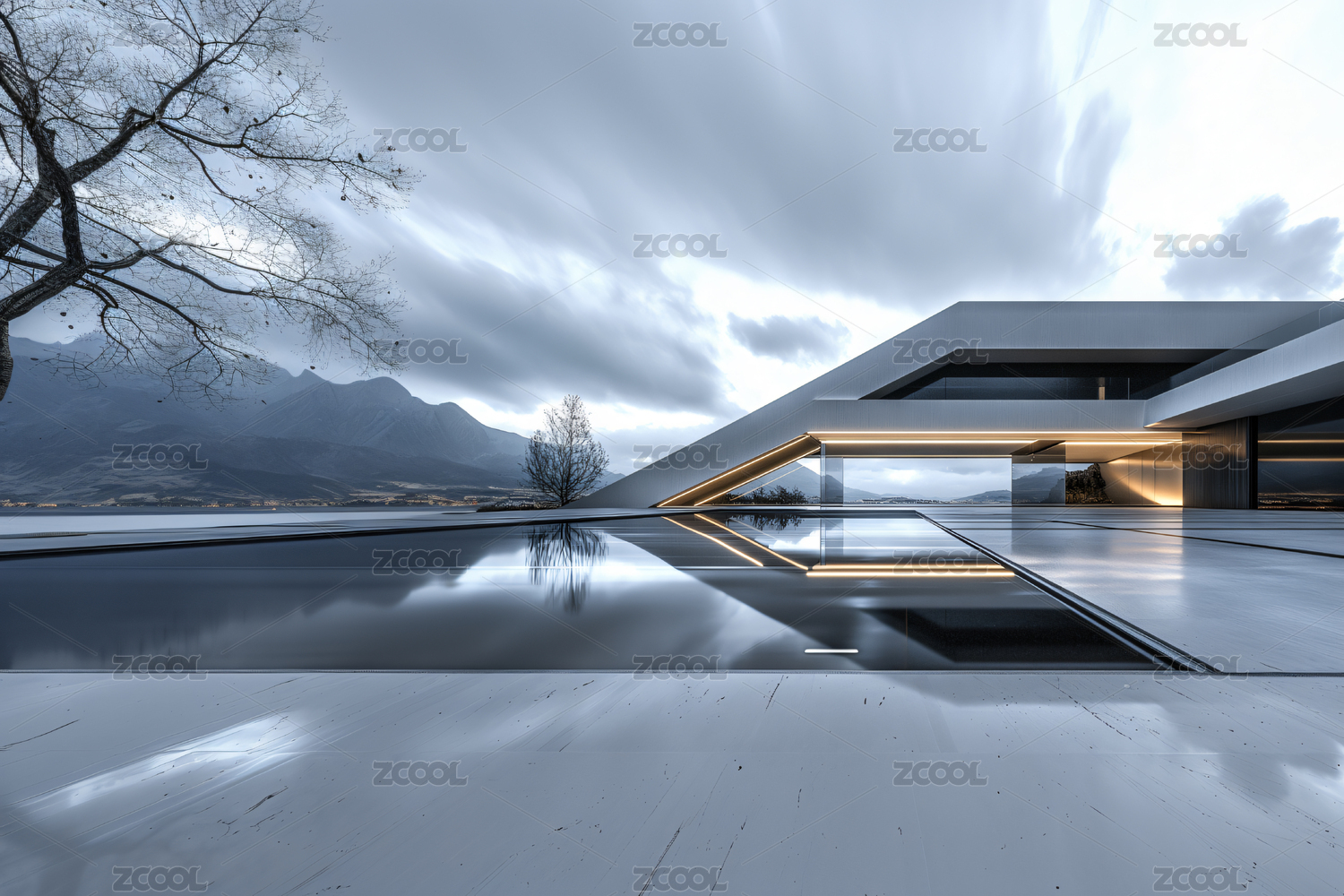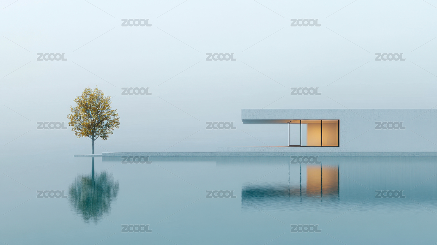 结构,建筑,简约,艺术,几何,创新,倒影,雾,水,水上