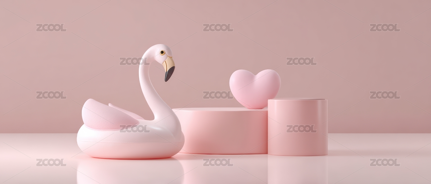 3D插图, 卡通风, 水面, 插画, 自然, 鸟类, 动物, 粉色背景, 优雅, 白色