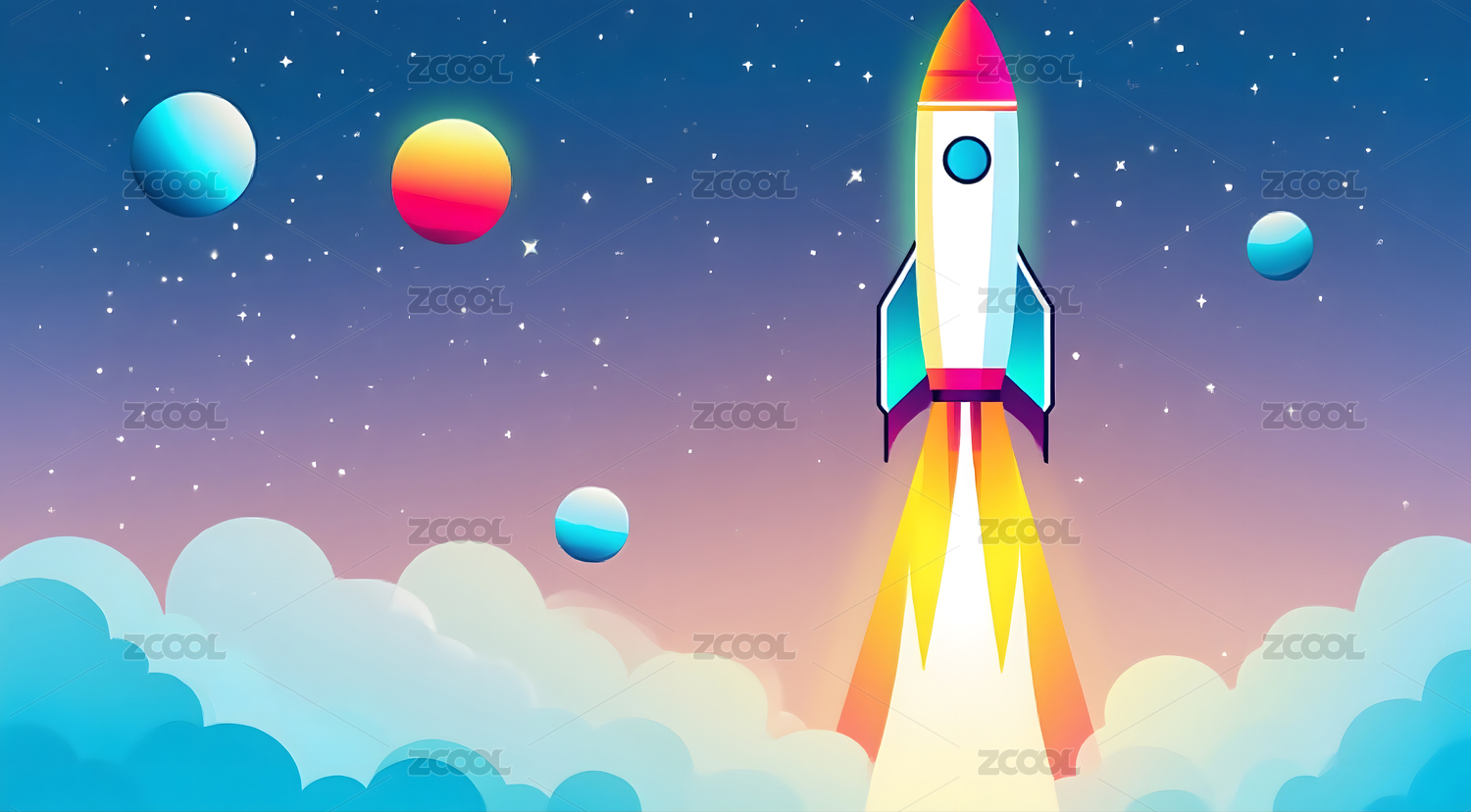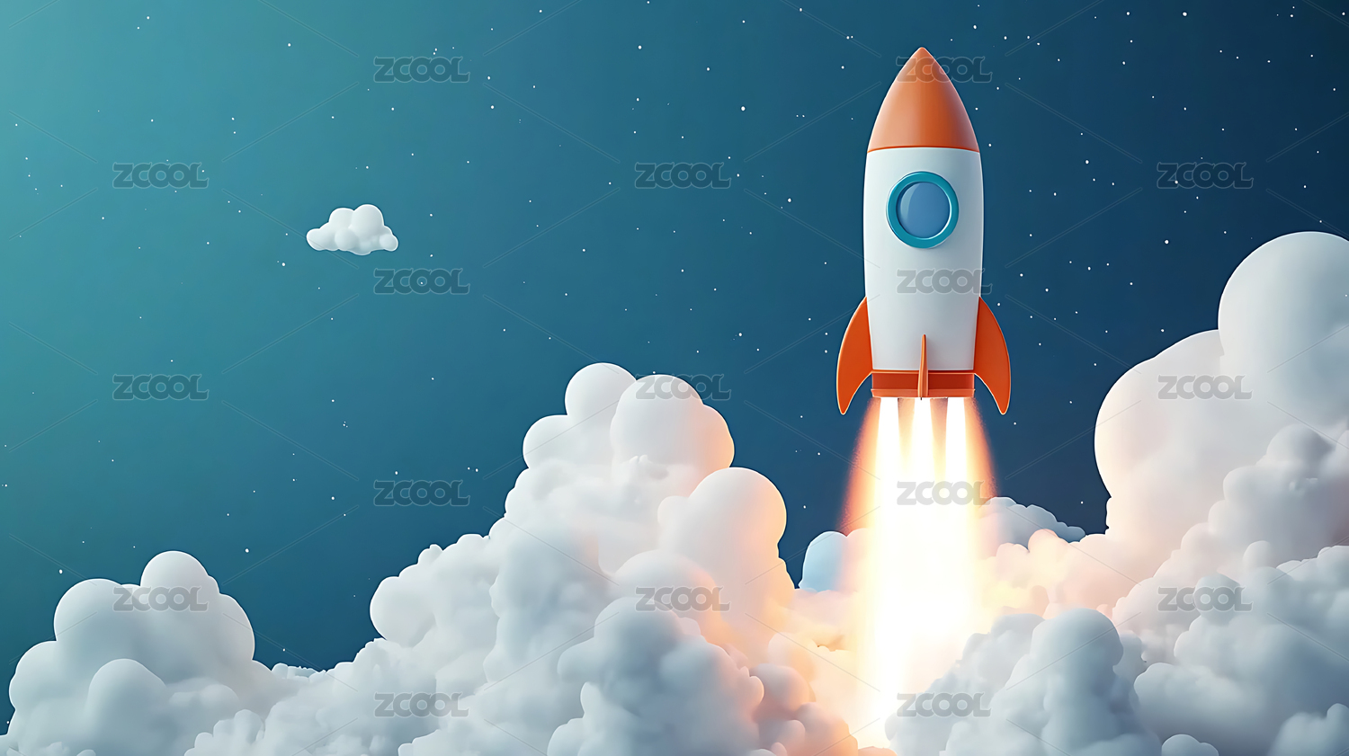 3D卡通火箭起飞背景