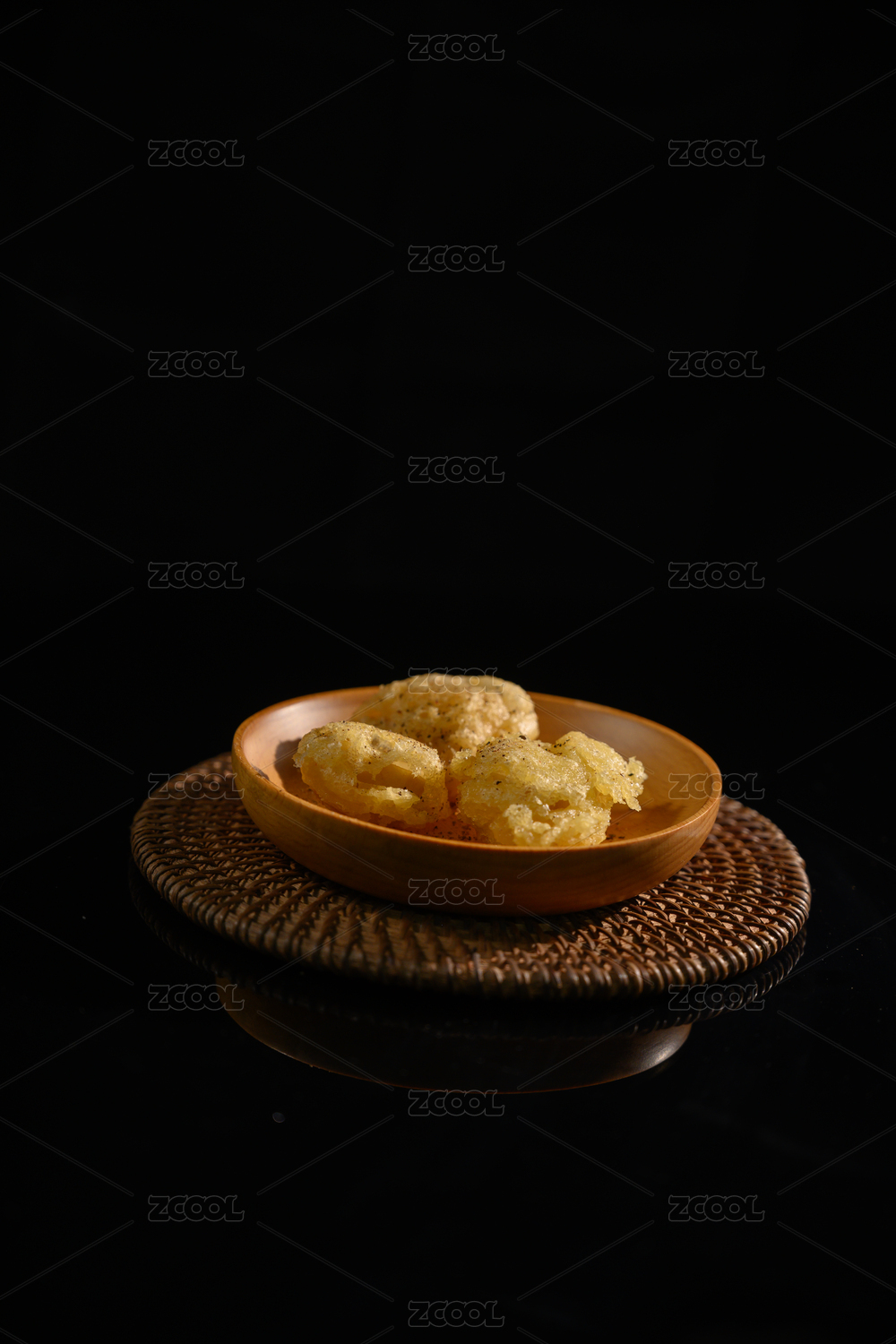 桌面上的盘子里的美味可口的炸杏鲍菇