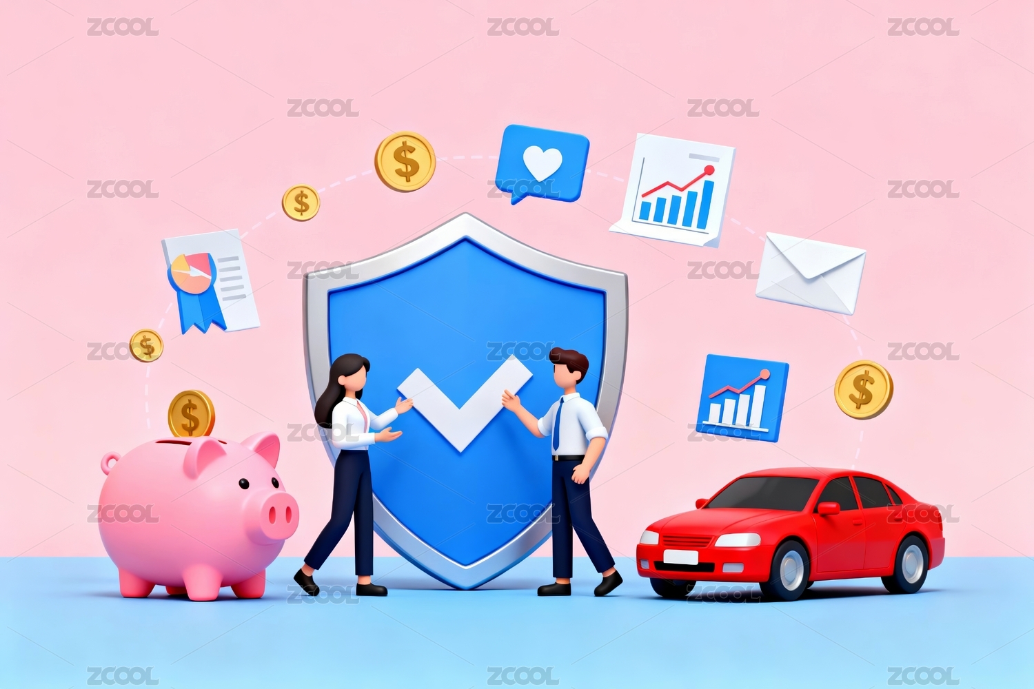 保险元素卡通综合保障场景