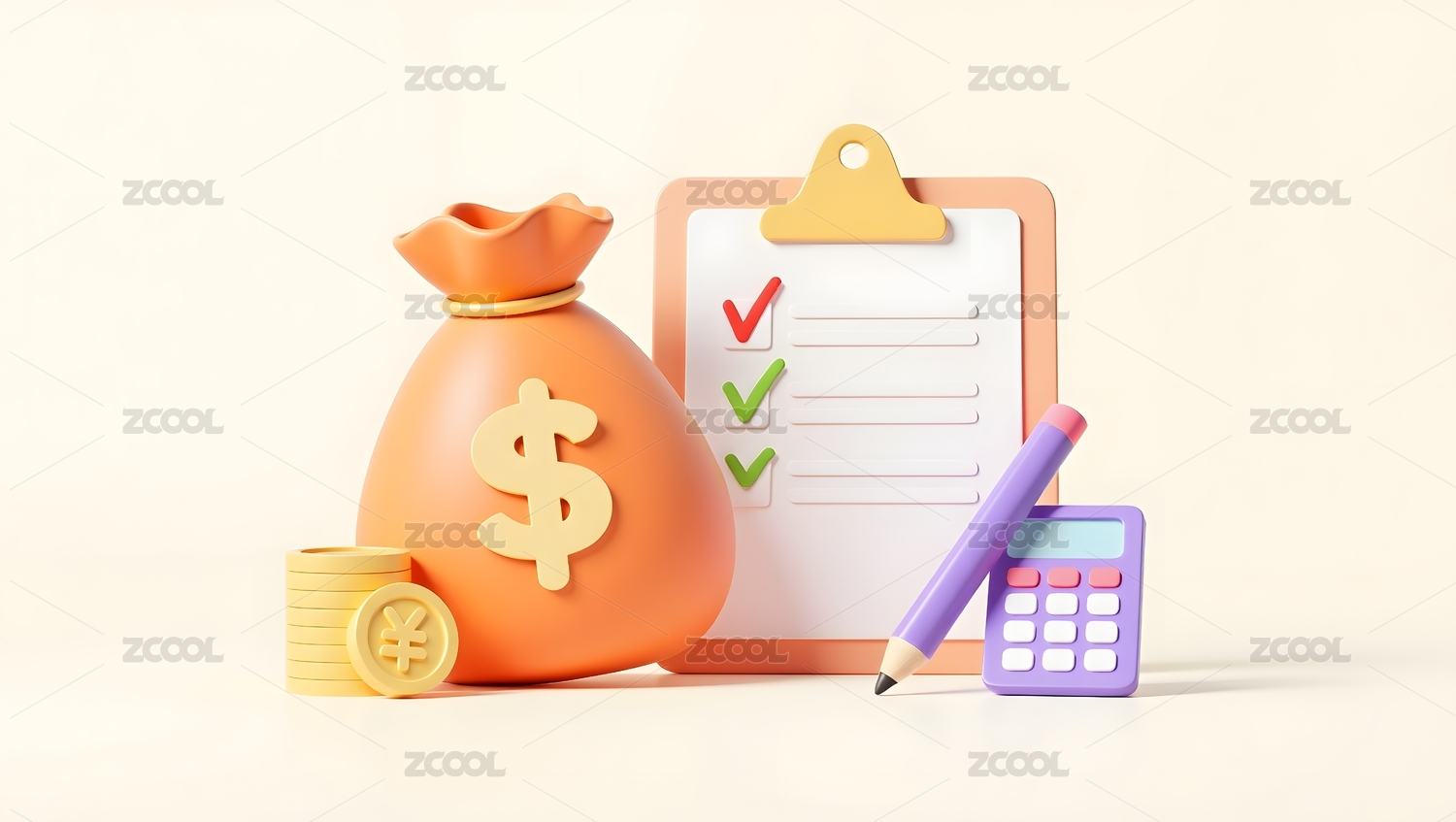 金钱袋和计算器的象征