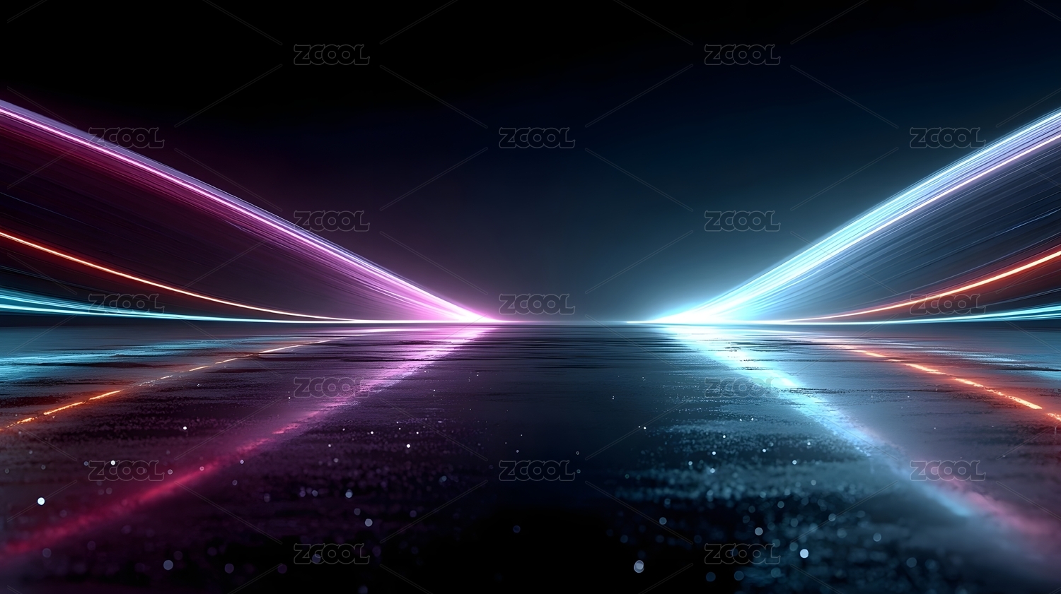 霓虹光束下的抽象深邃空间