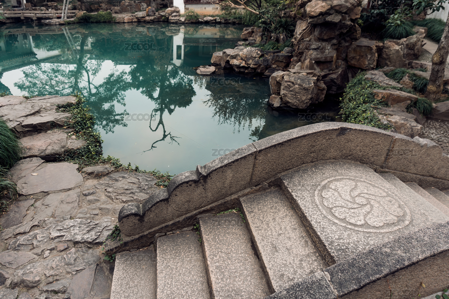 中国江苏苏州寒山寺水景园林 寒拾泉及白鹅