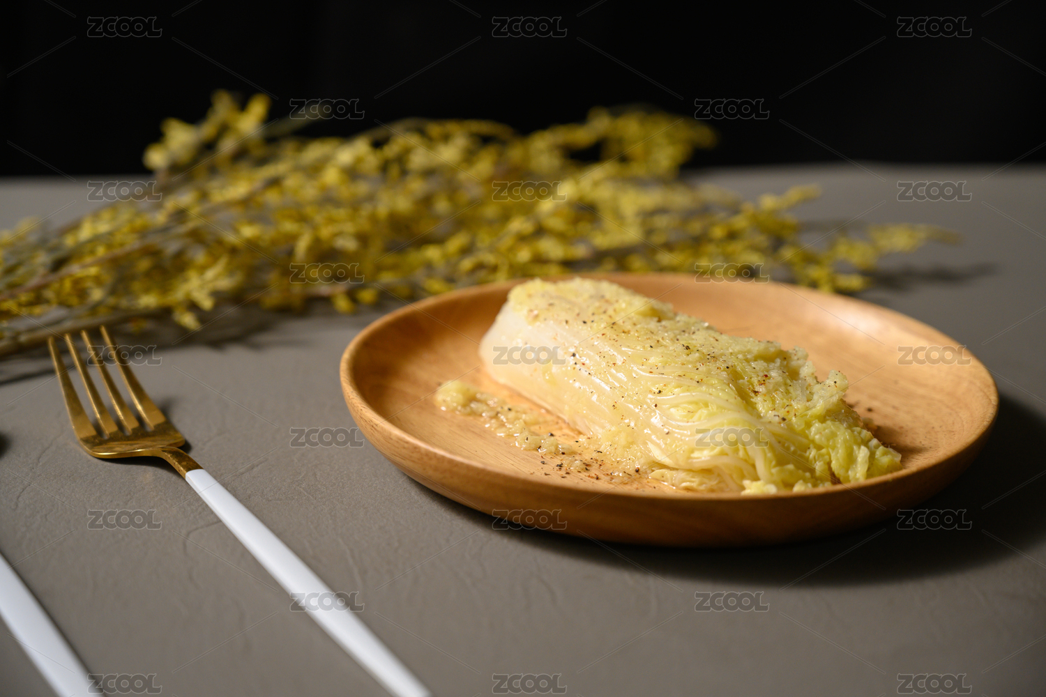 桌面上的盘子里的美味可口的蒜蓉娃娃菜