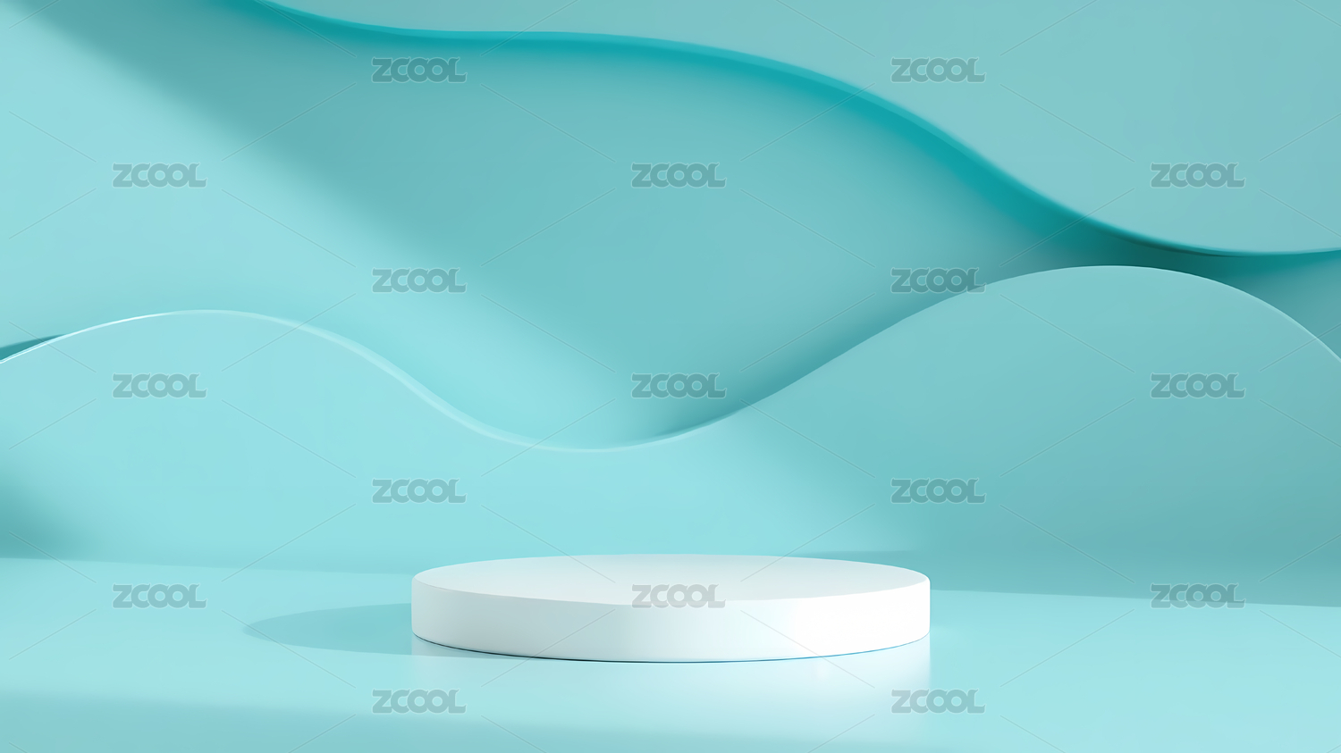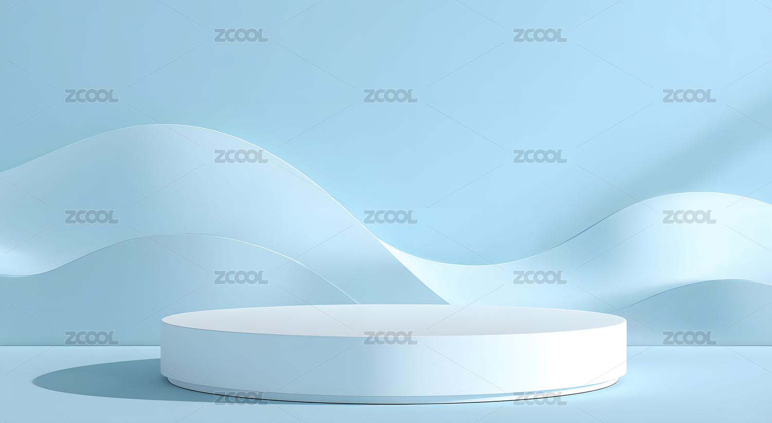 蓝色背景下的白色圆形展台