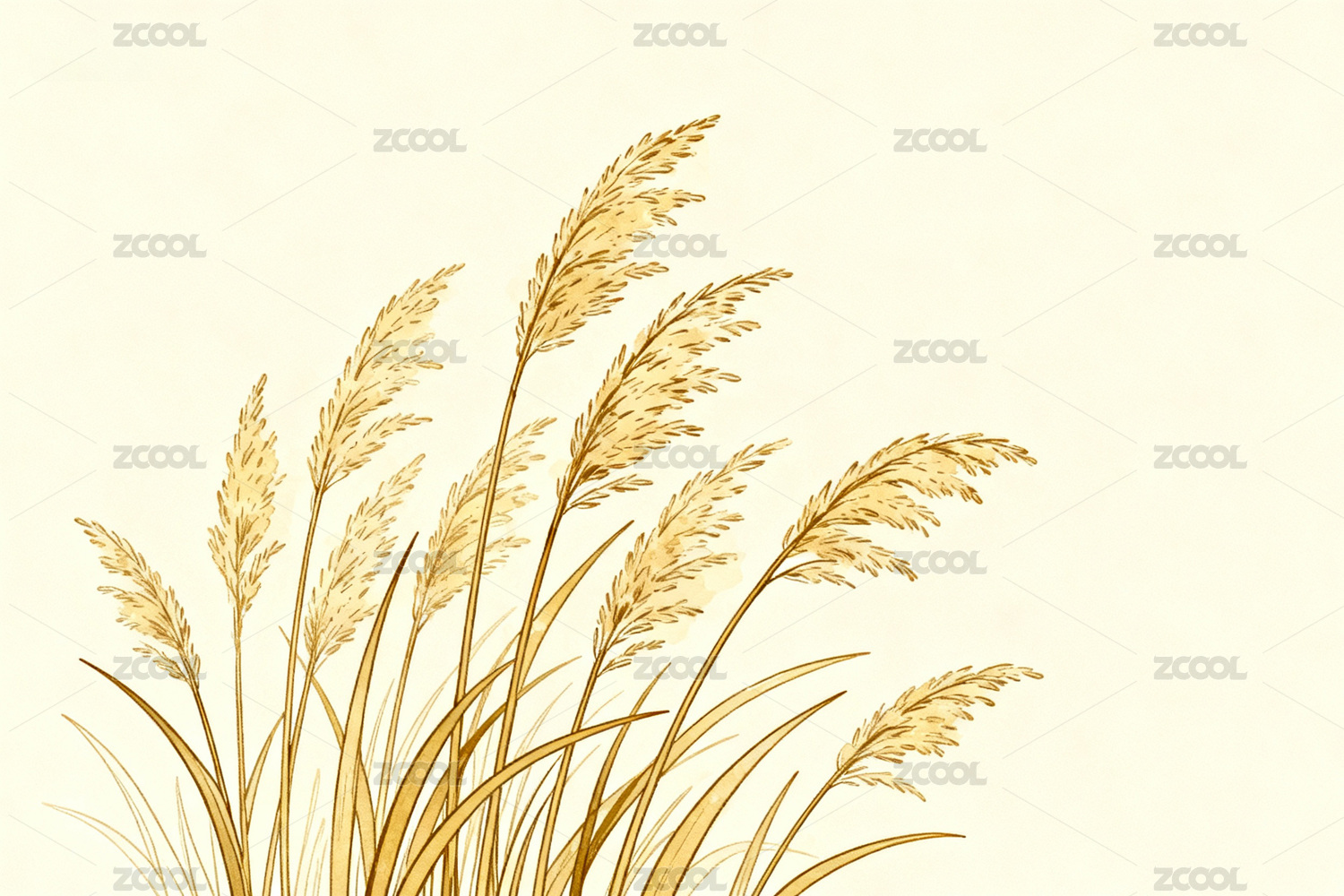 金黄色芦苇随风摇曳