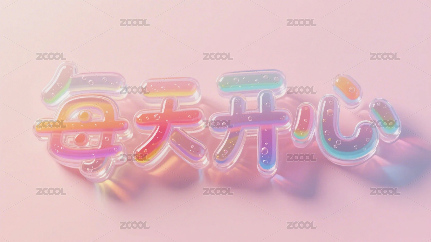 “每天开心” 透明彩色立体艺术字