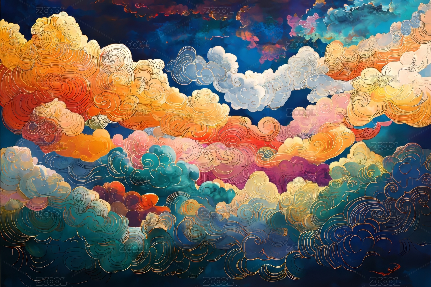 彩色国潮云纹插画海报背景