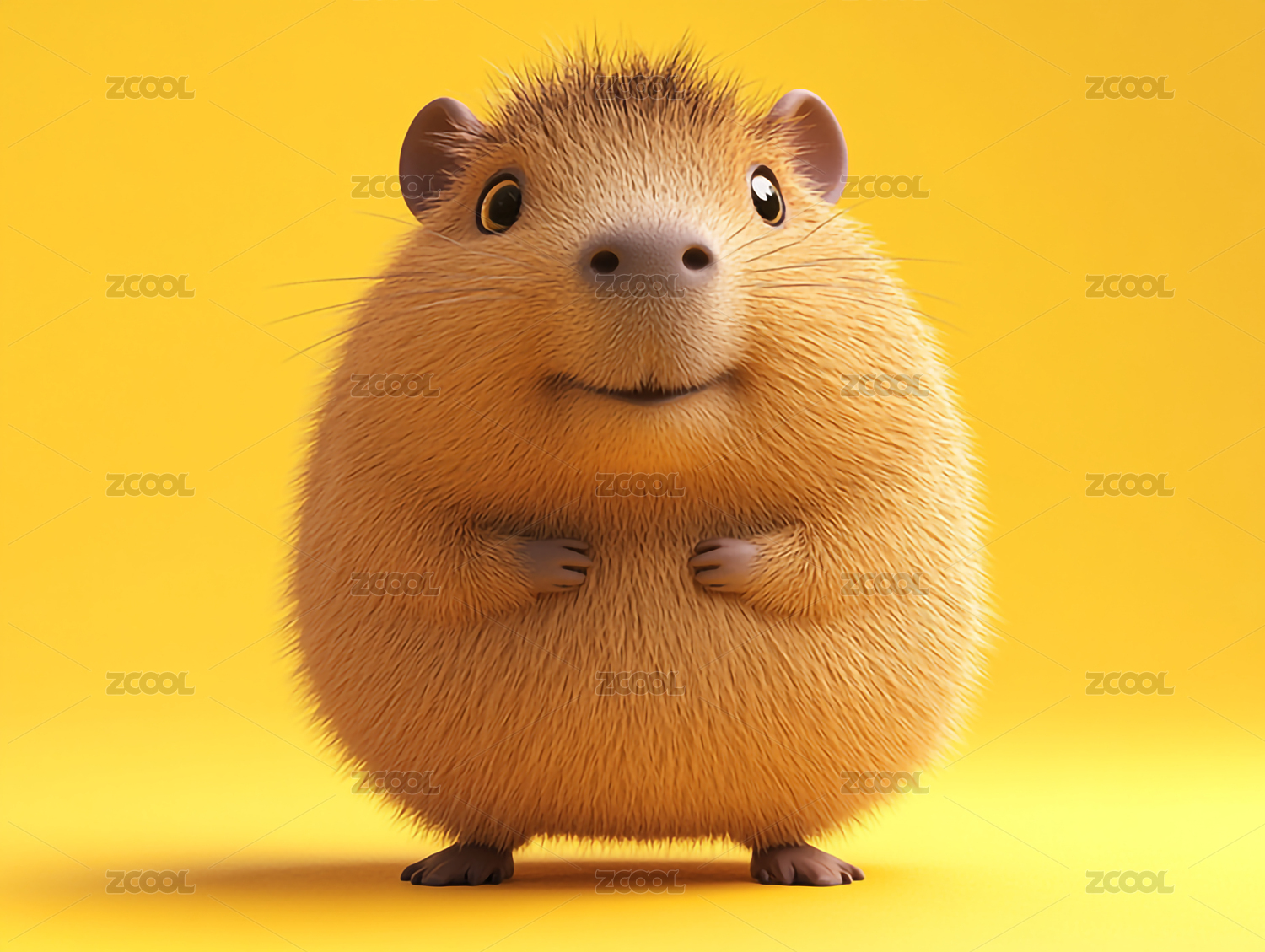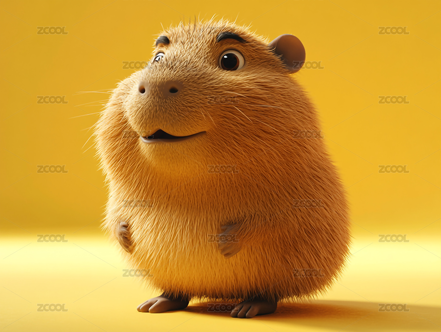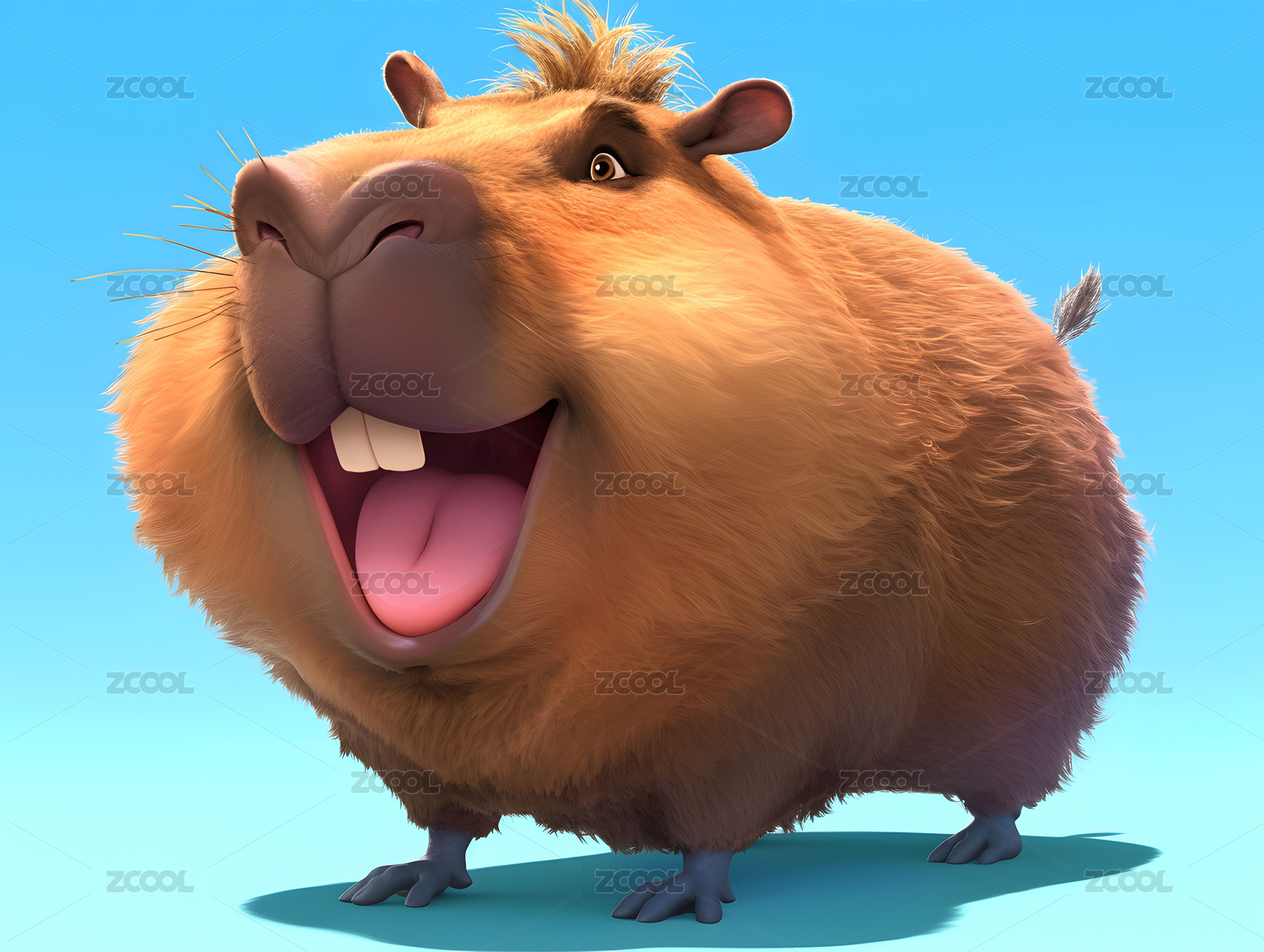 动物,水豚,卡皮巴拉,毛茸茸,可爱,拟人,夸张,表情,卡通,动画