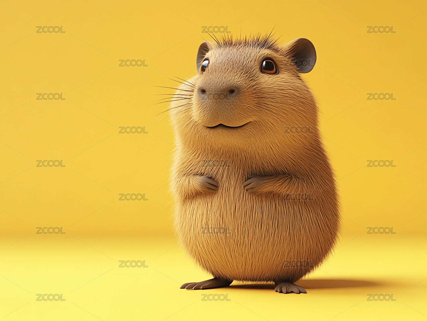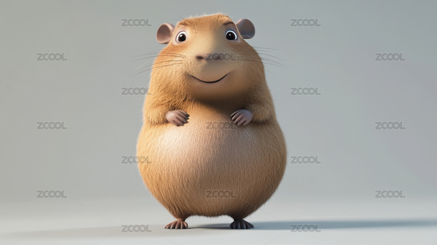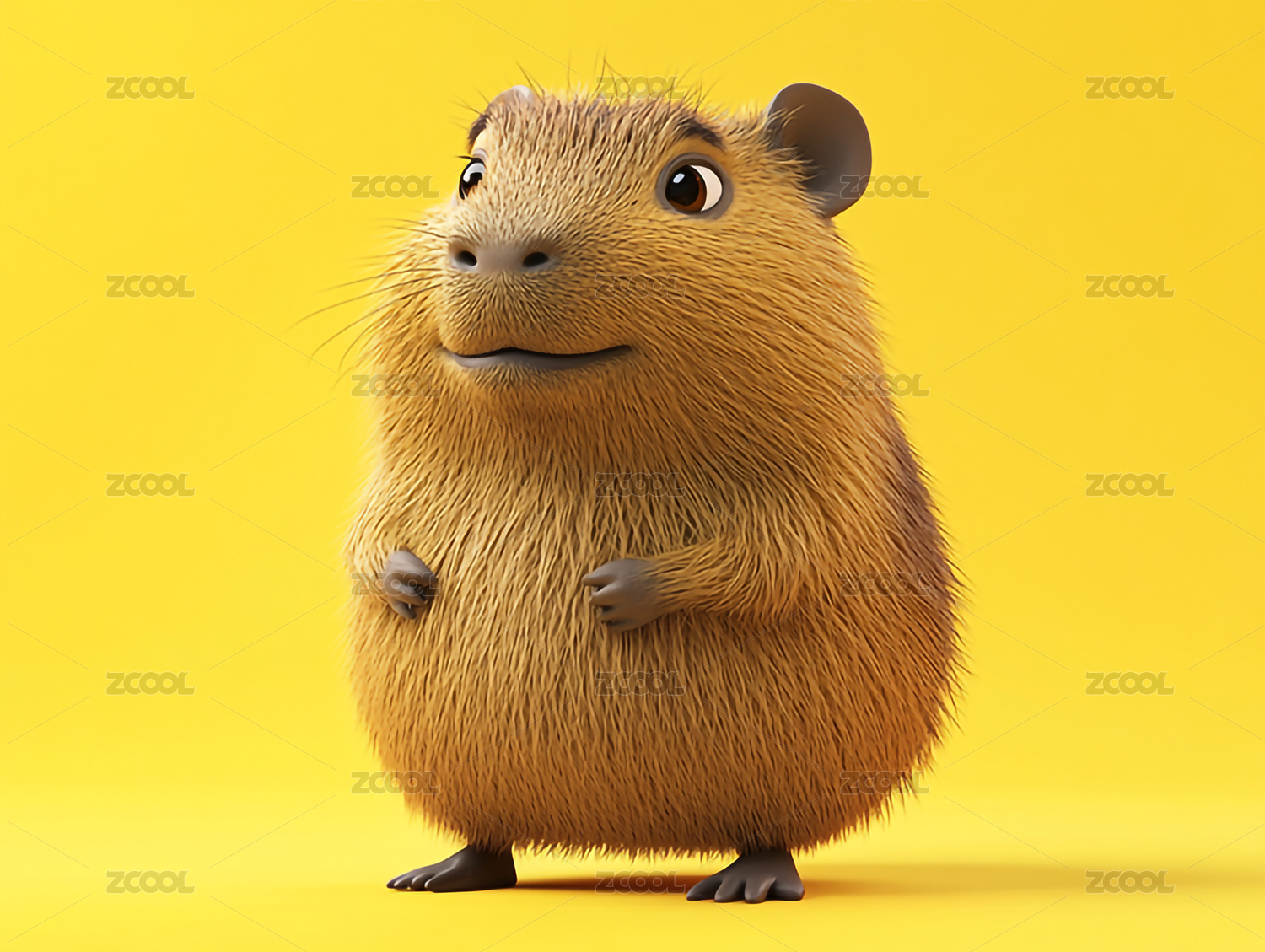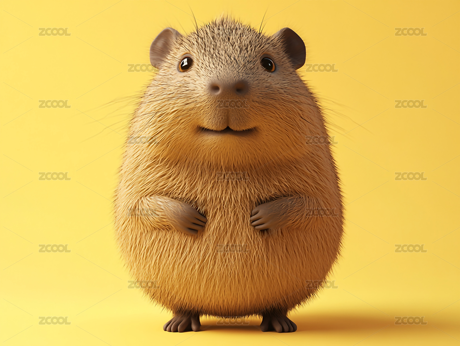 动物,水豚,卡皮巴拉,毛茸茸,可爱,拟人,夸张,表情,卡通,动画