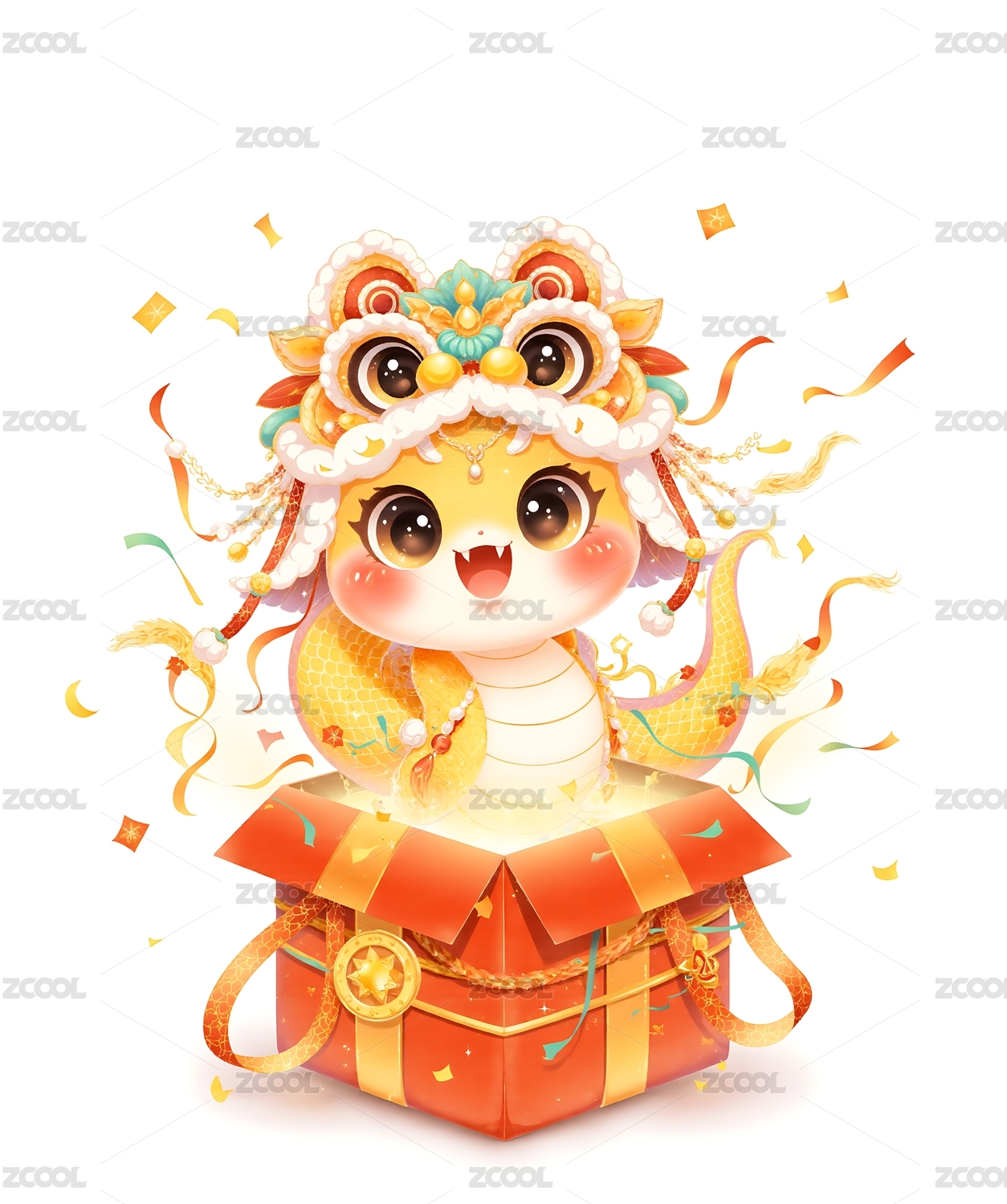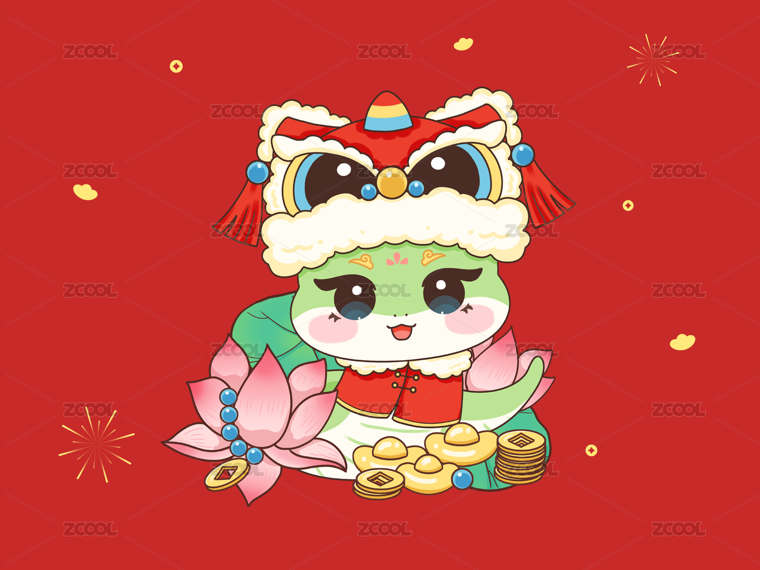 蛇年头戴醒狮帽卡通蛇矢量插画