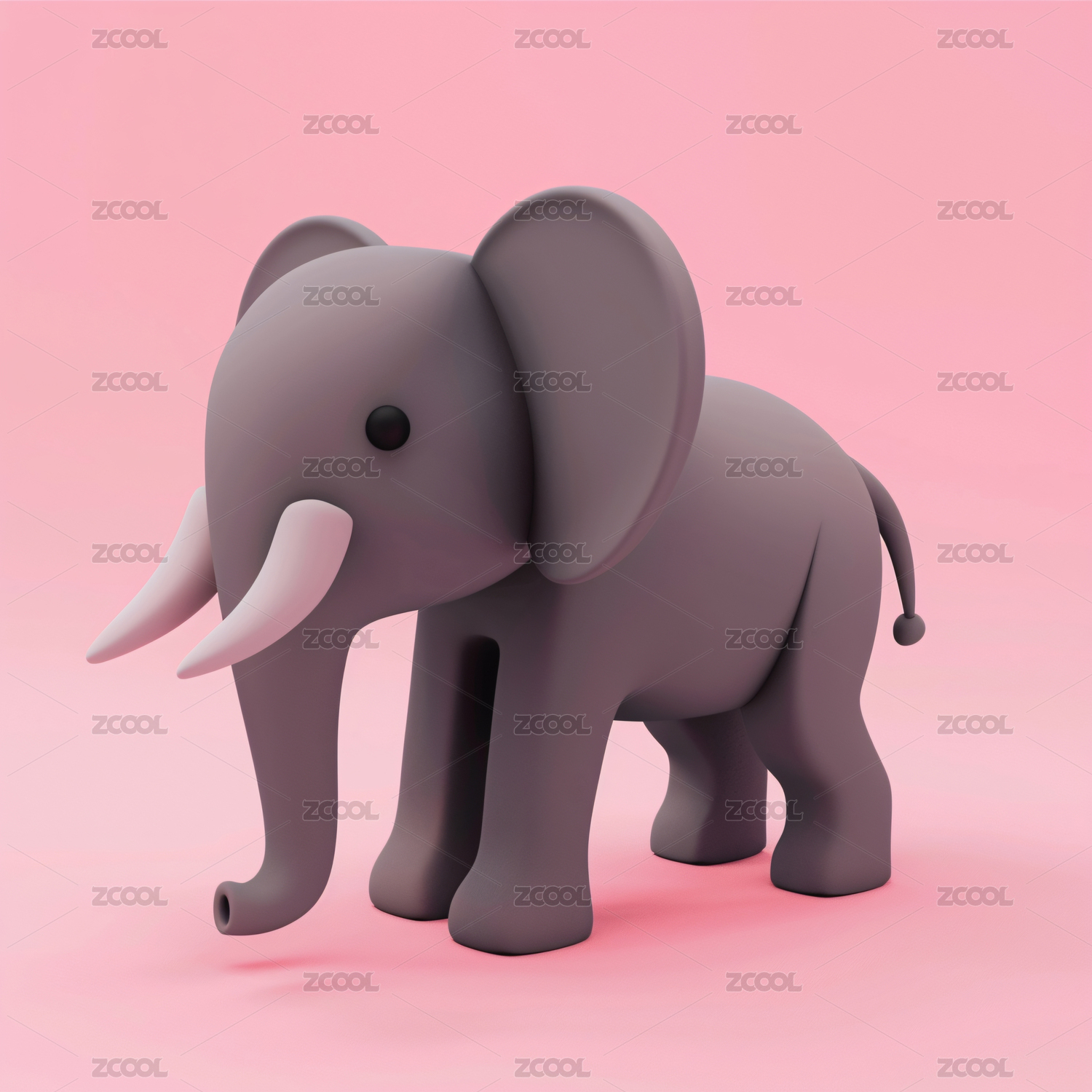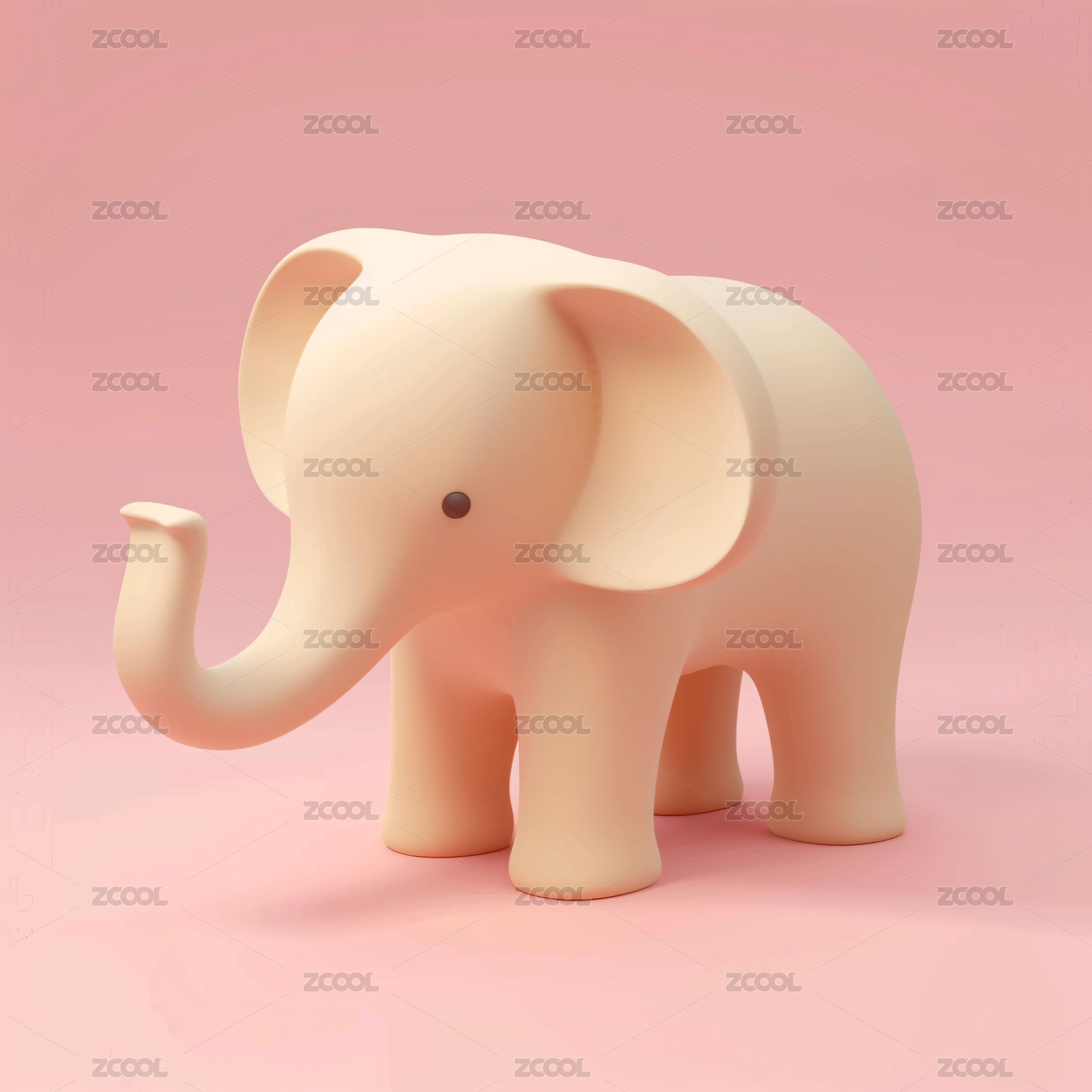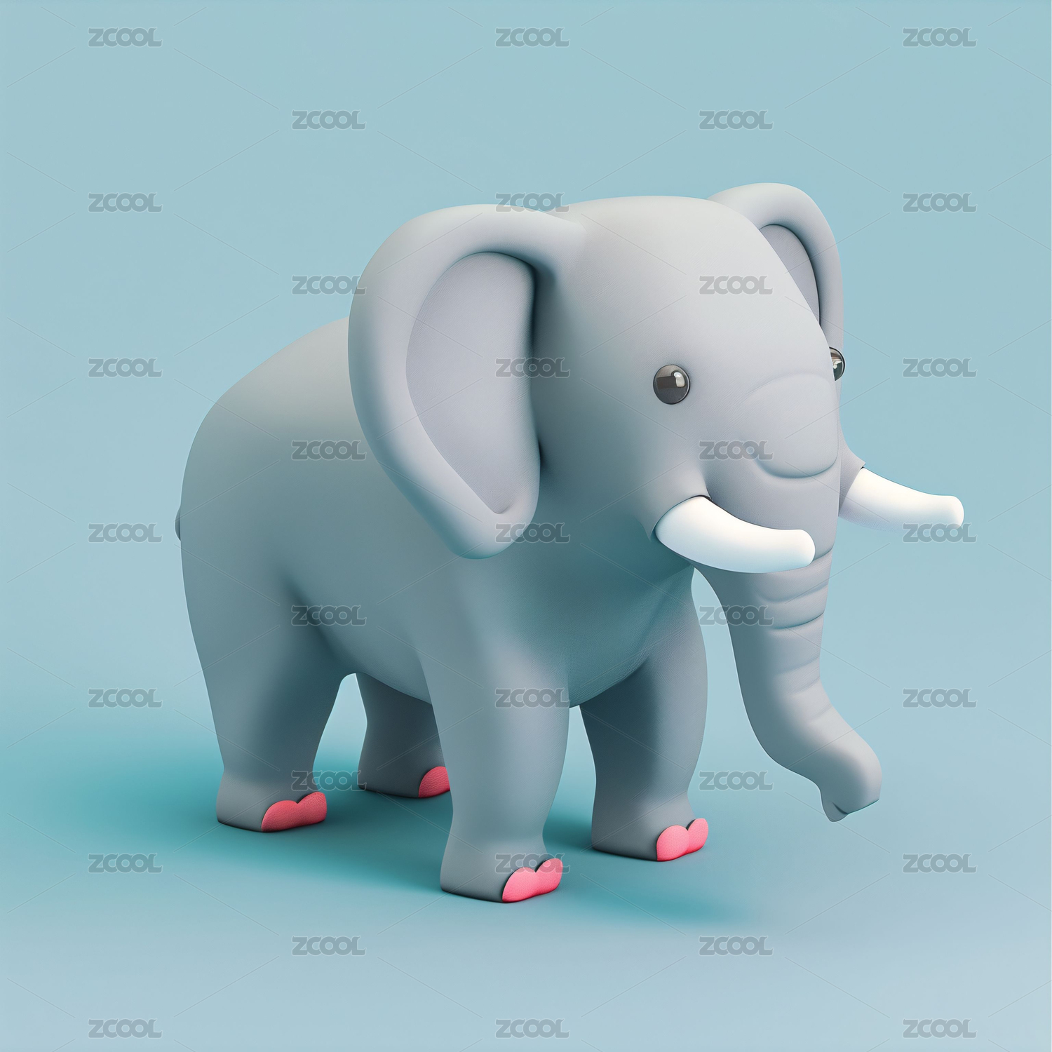 可爱,呆萌,小象,象,图标,标志,标识,3D,立体,建模