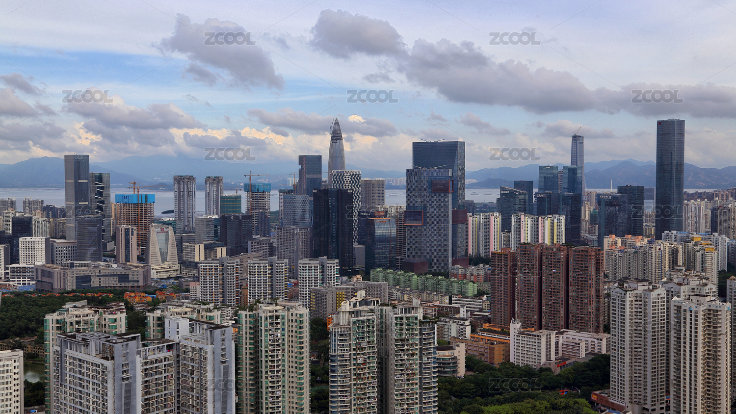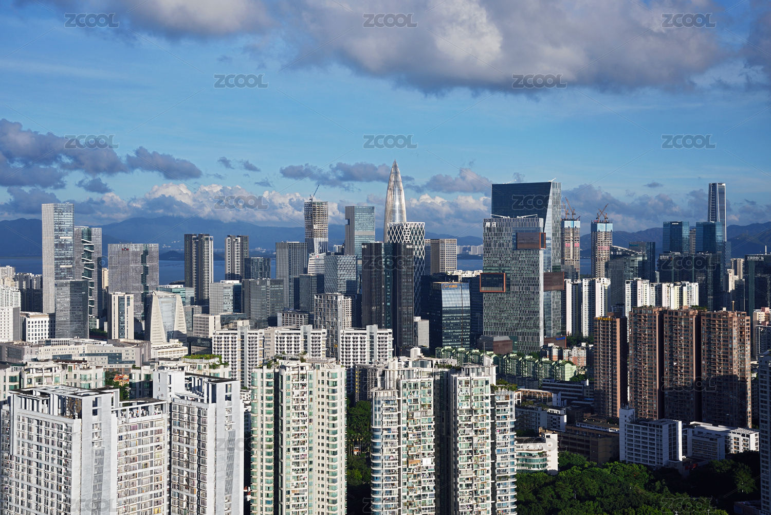 中国广东省深圳福田城市建筑群高楼大厦风光