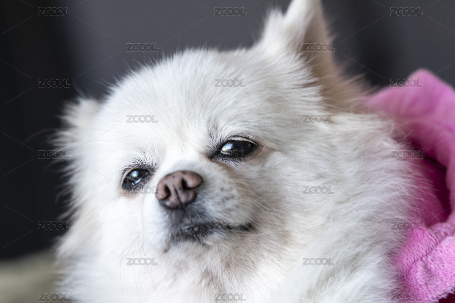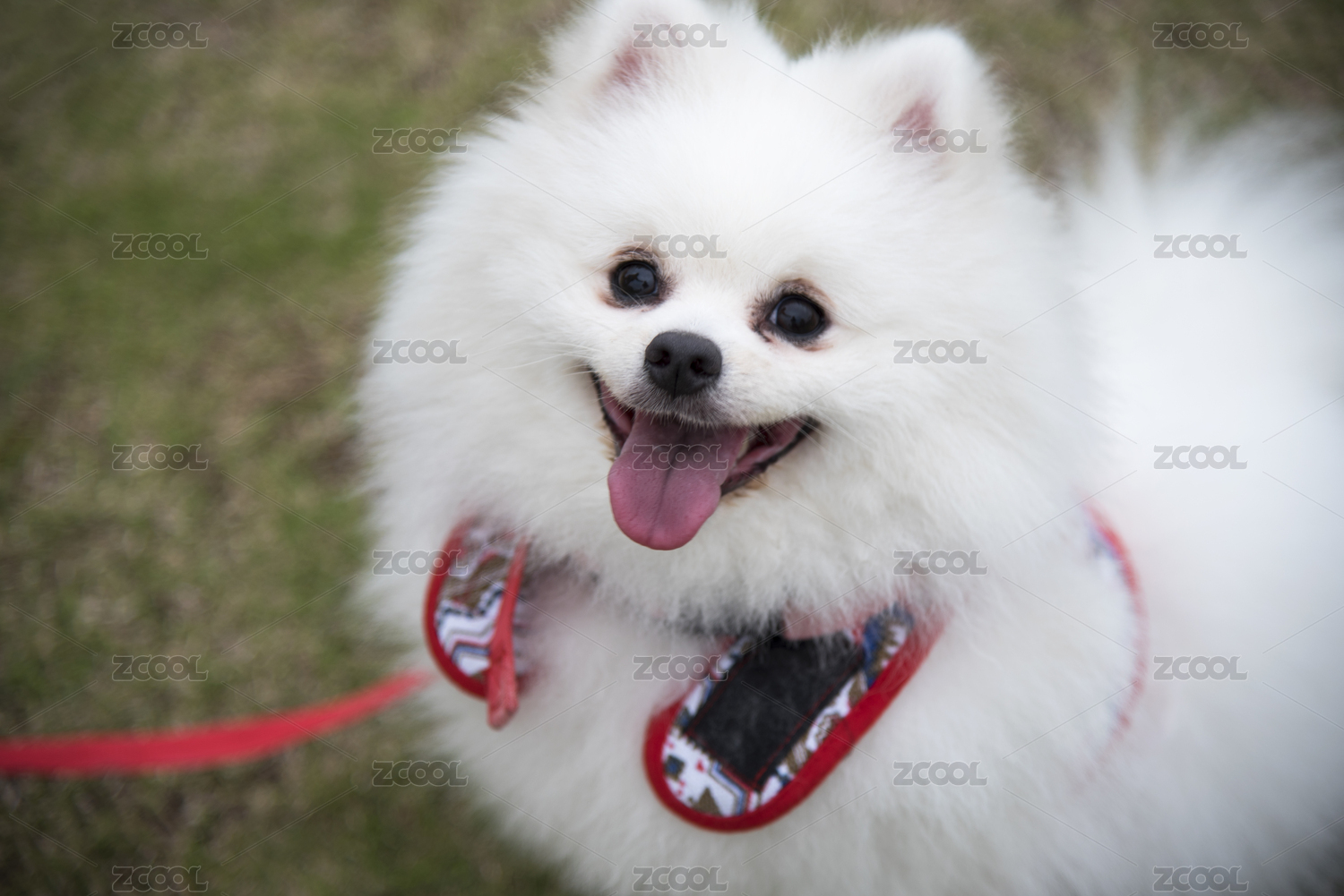 笑脸吐舌头活泼可爱的博美犬正面纯色背景
