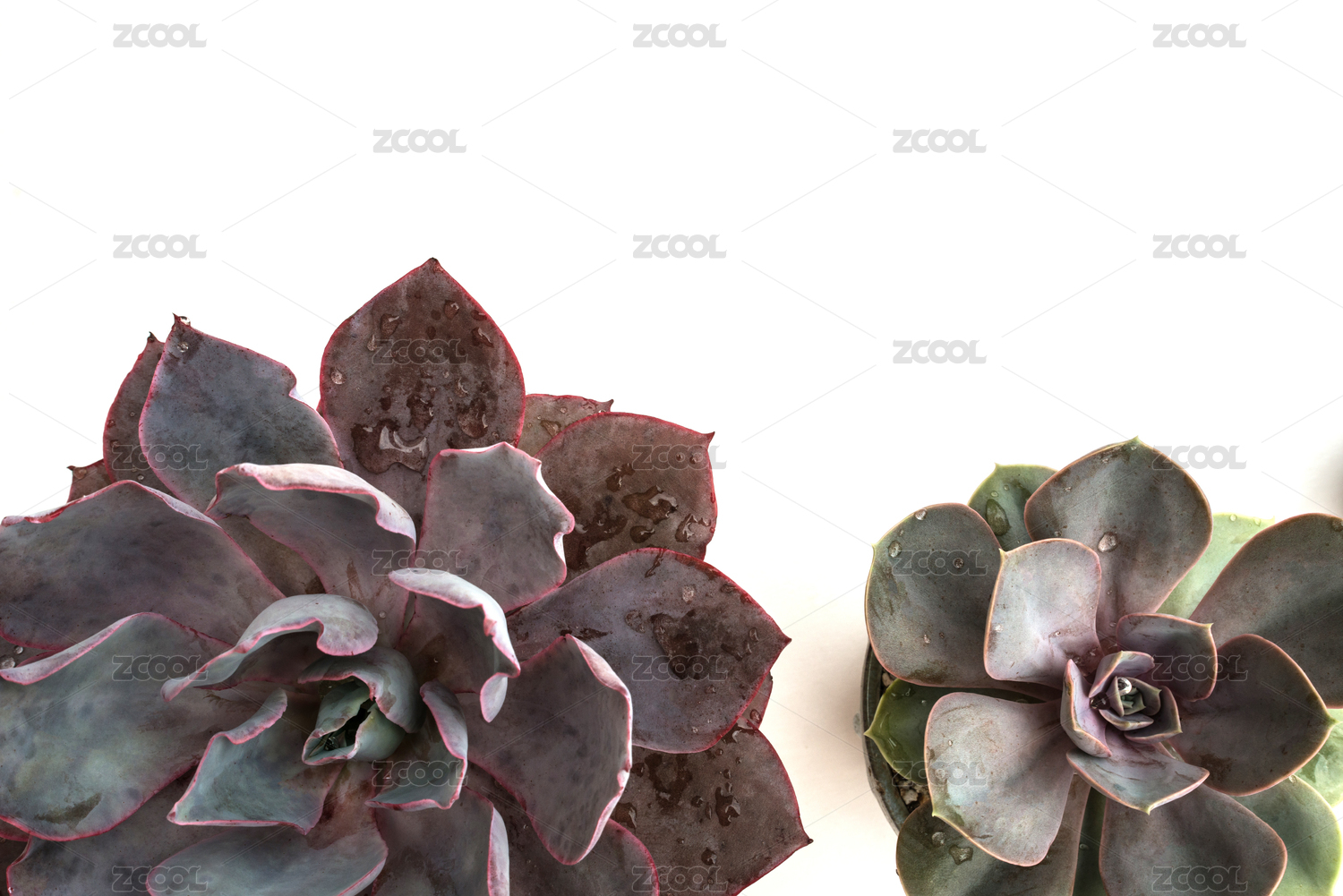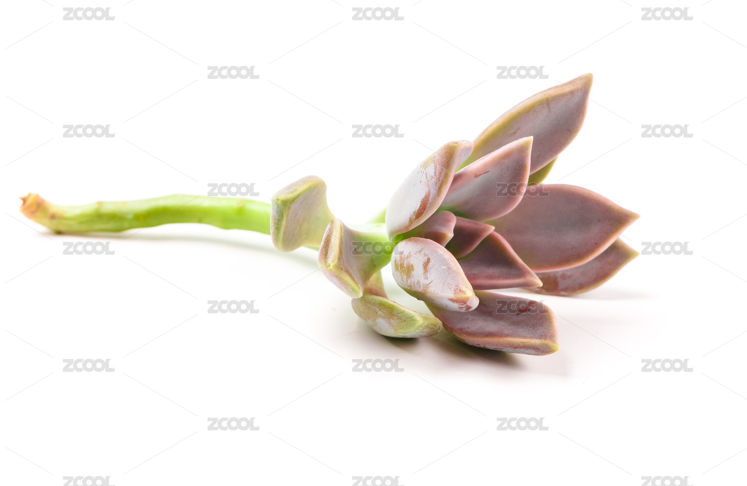 白底上长势旺盛的多肉植物晚霞和紫珍珠