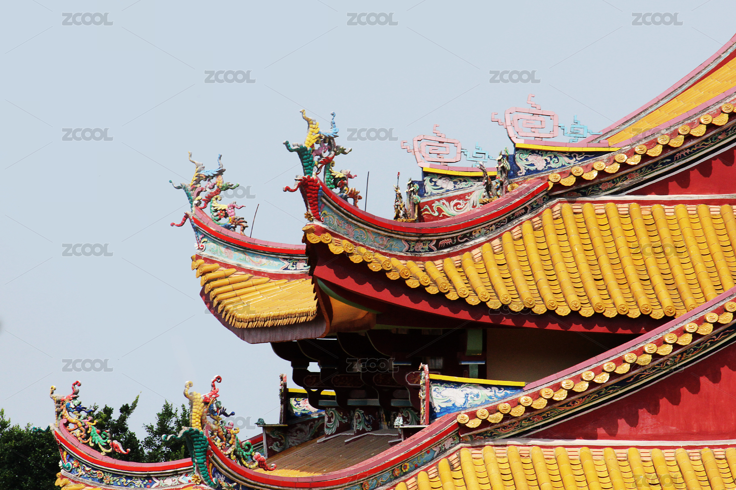 泉州关帝庙中国传统古典建筑屋檐龙形嵌瓷工