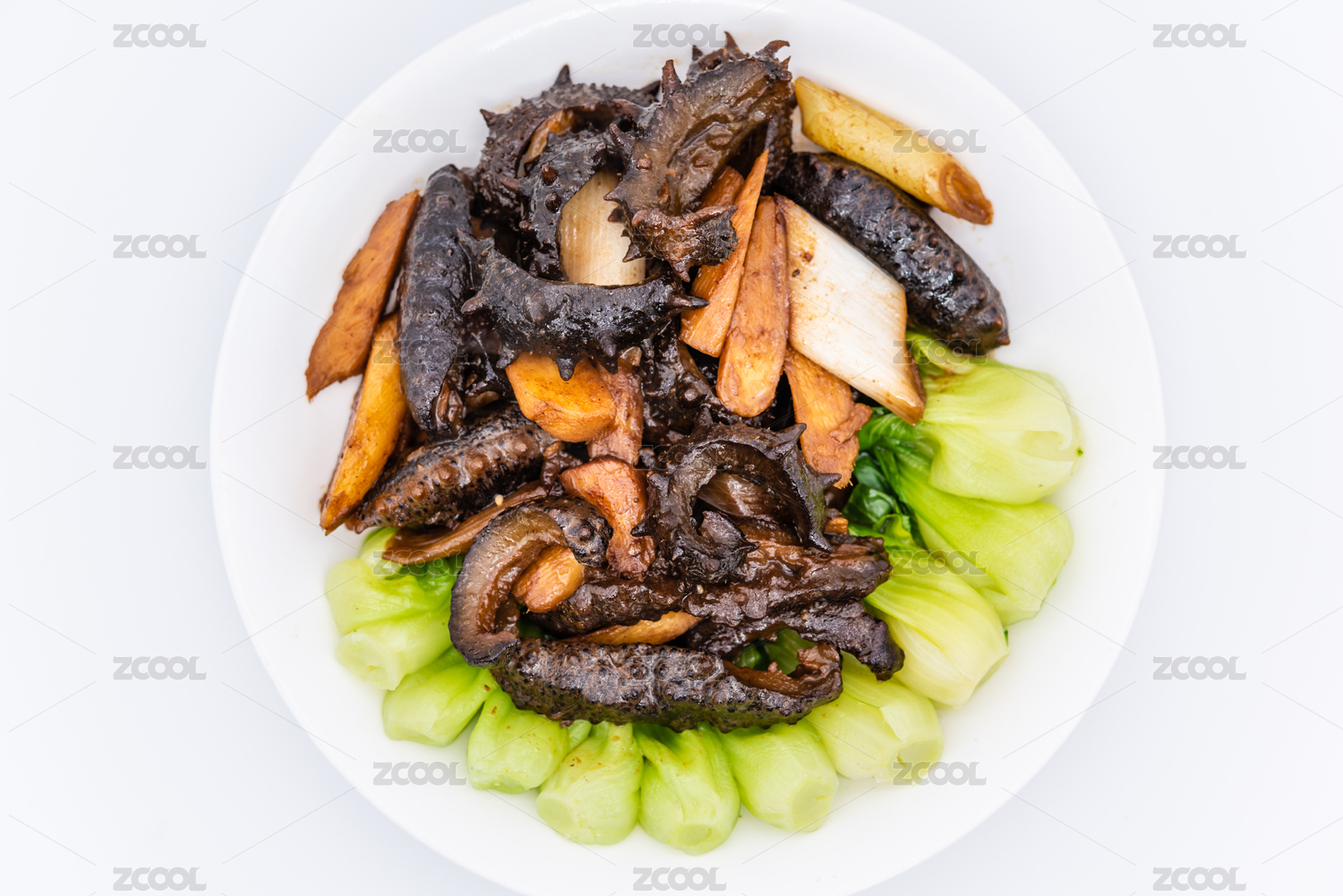 一盘油菜葱烧海参