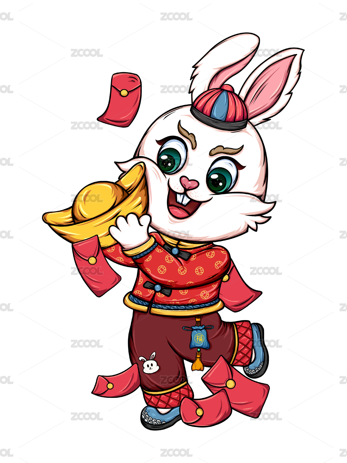 兔年年画元素风调雨顺四大天王兔北方多闻天