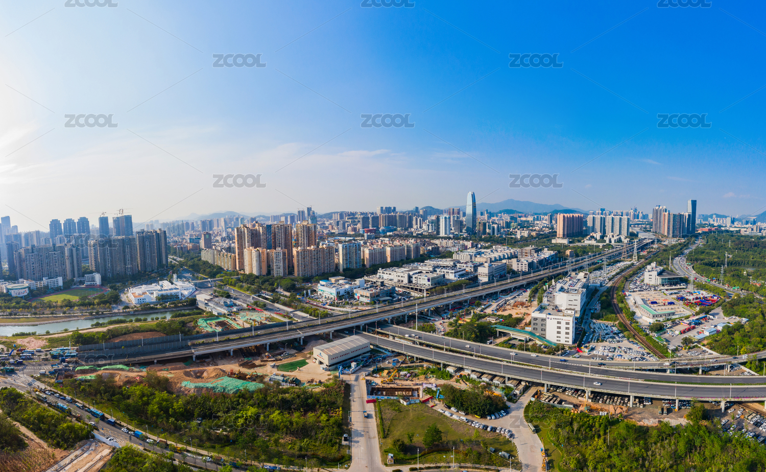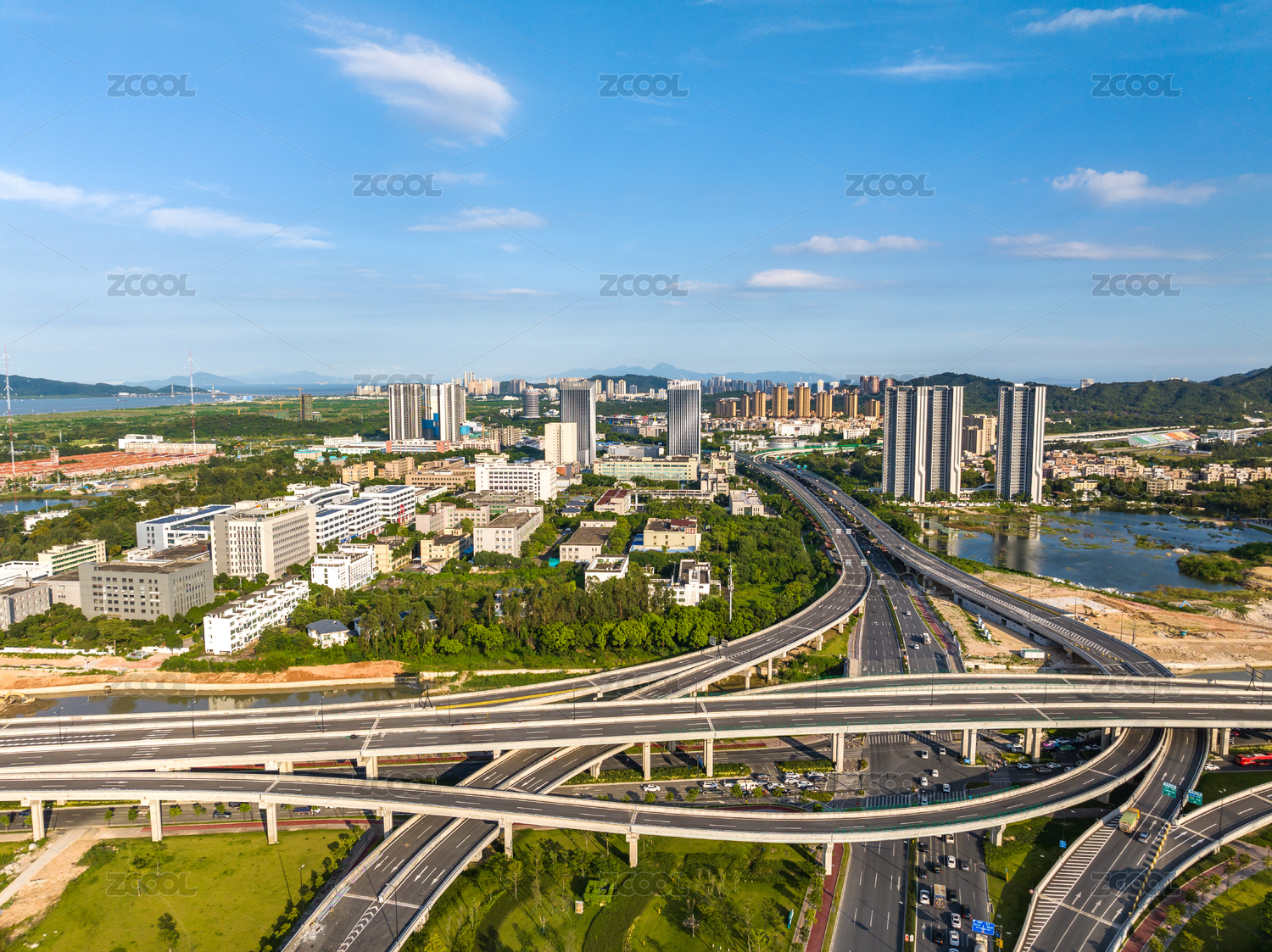 珠海,高新区,唐家,高新互通立交桥,马路,交通,高视角,现代,建筑,白昼