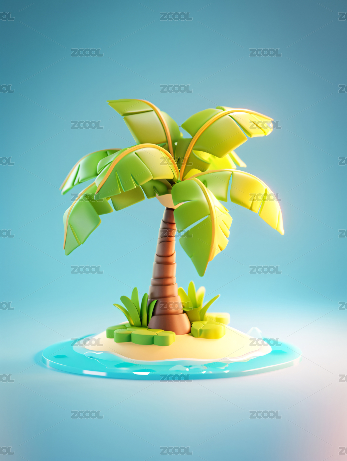 3D渲染的椰子树,夏季热带海岛夏天节气概