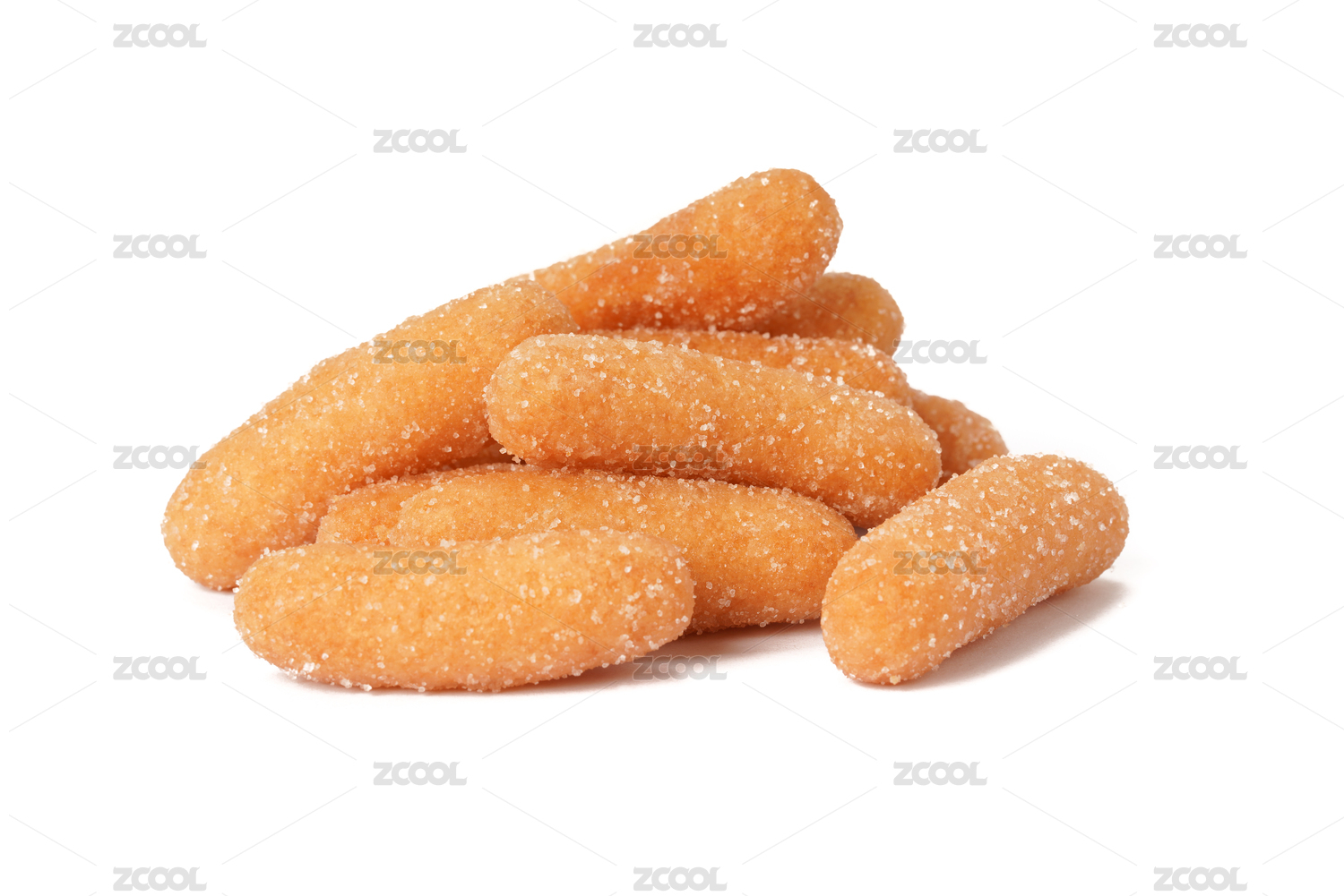 白色背景下一堆金黄色的江米条