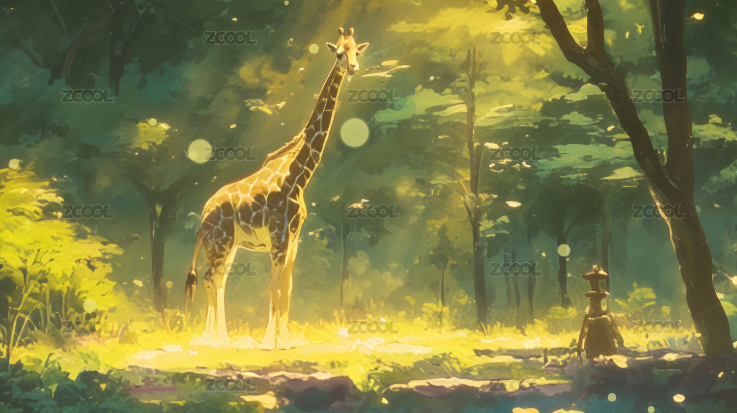 动物,户外,自然,插画,森林,植物,草,长颈鹿