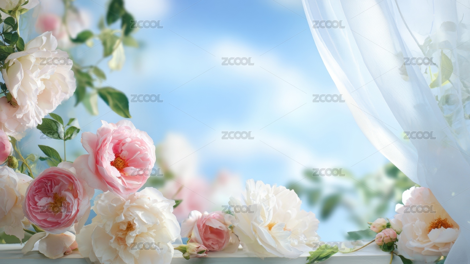 罗马柱玫瑰花朵户外草地天空唯美背景
