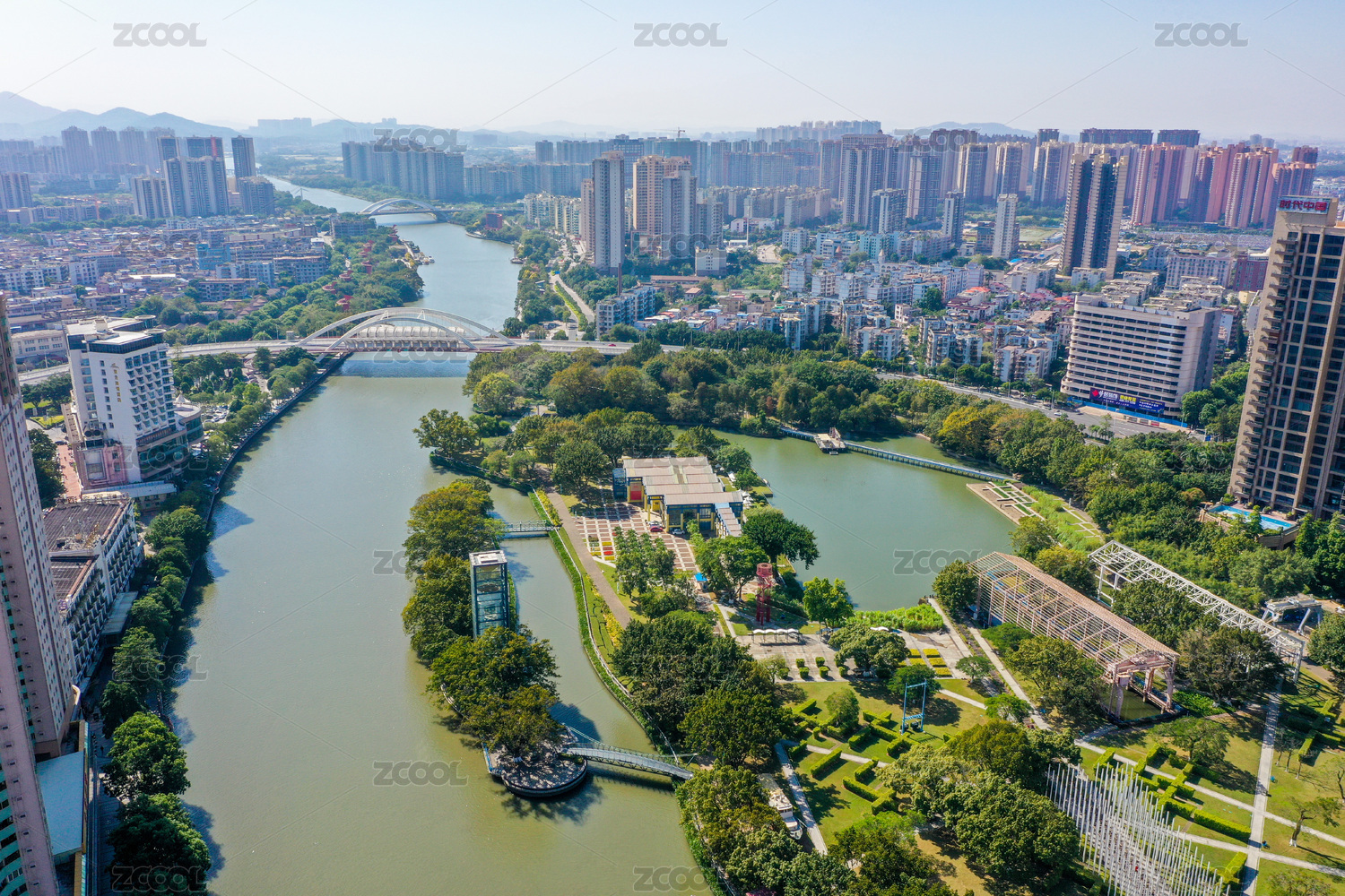 航拍广东佛山礌岗公园佛山南海活水公园风光