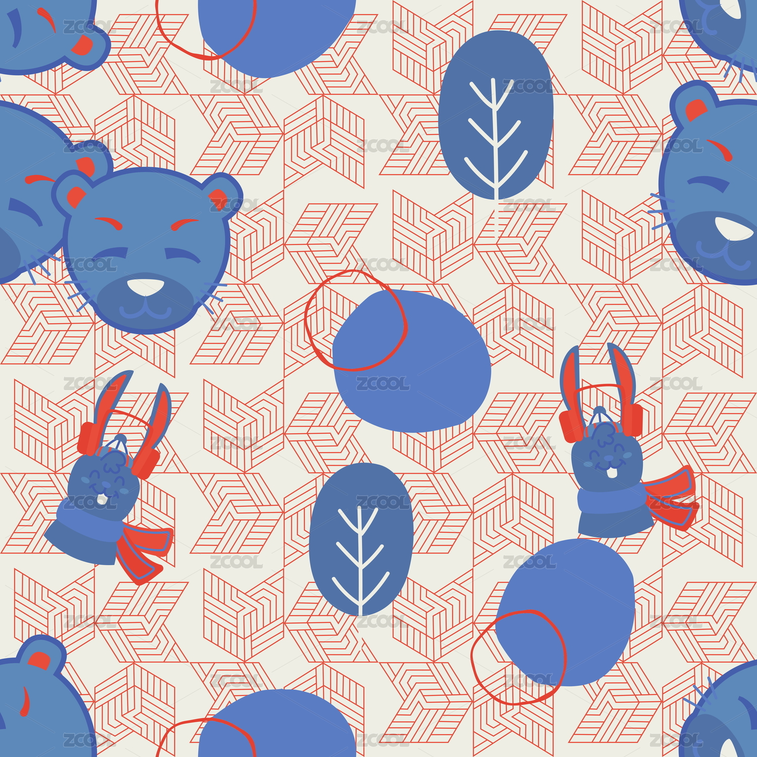 插画,动物,无缝,卡通,可爱,拼接,重复,图形,图案,位图