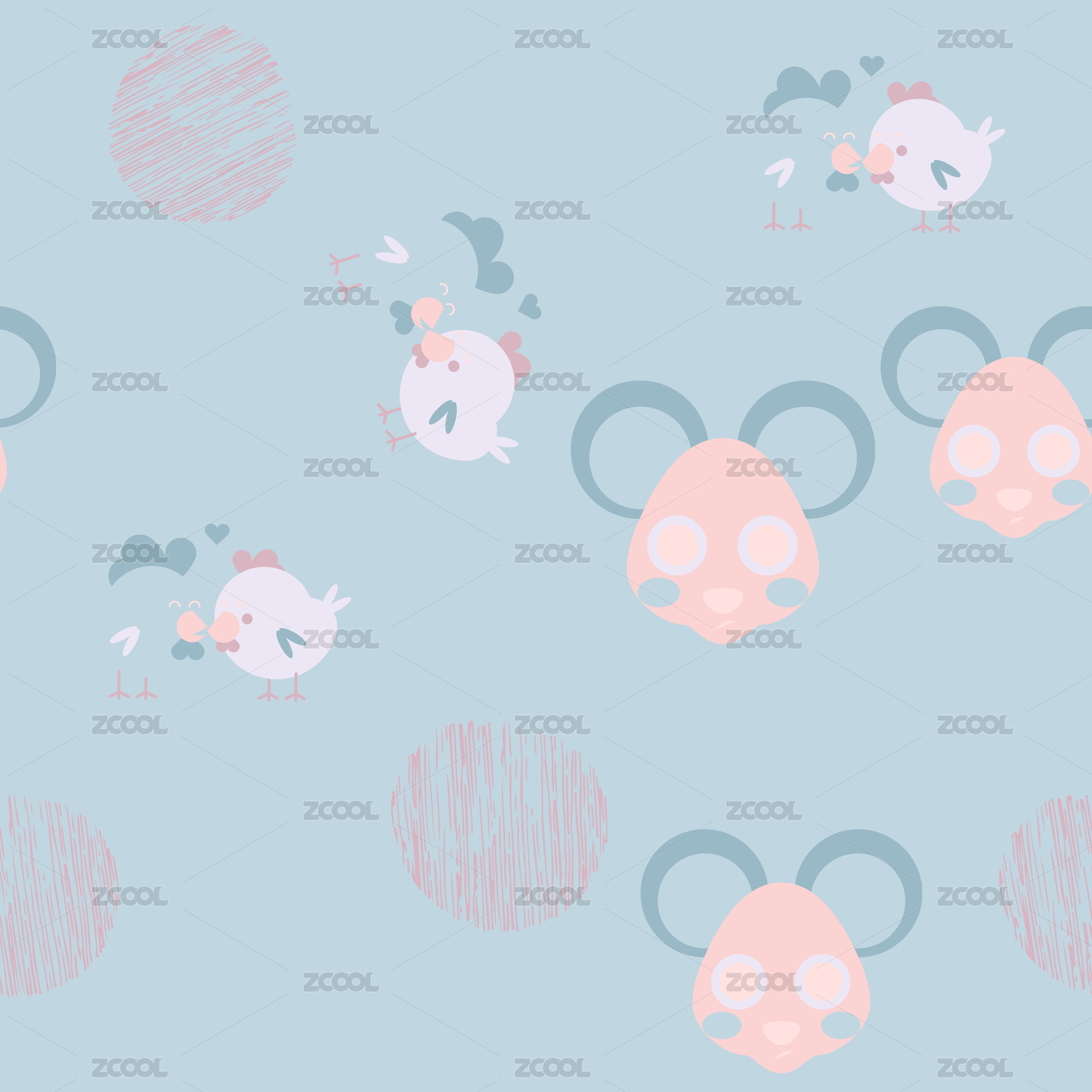 卡通动物无缝插画