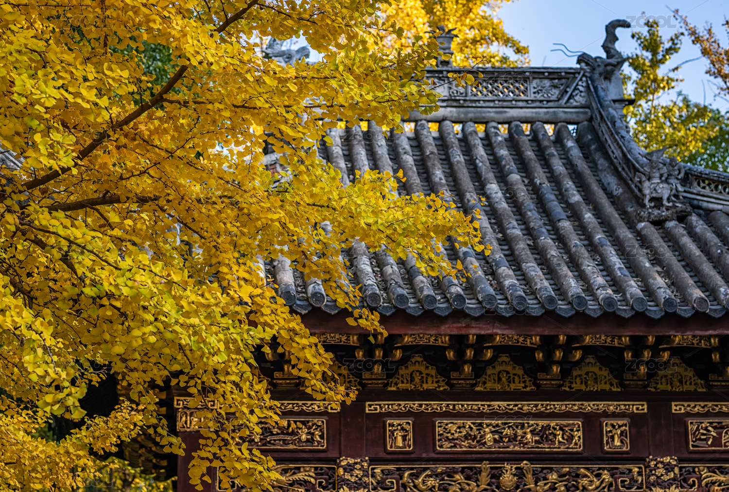江苏,苏州,西园寺,秋日,秋景,银杏,红枫,自然,风光,寺庙
