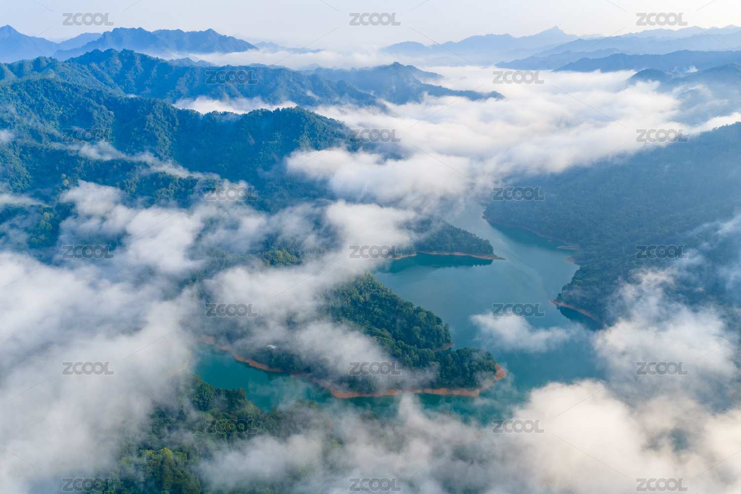 航拍中国湖南郴州资兴市东江湖雾漫小东江