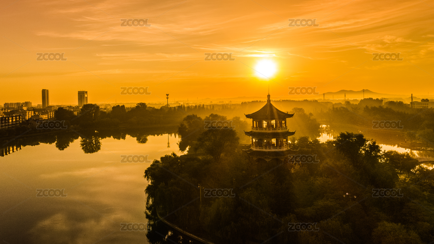 无人,户外,风景,天空,东湖,建筑,旅游目的地,日出,航拍视角,日落