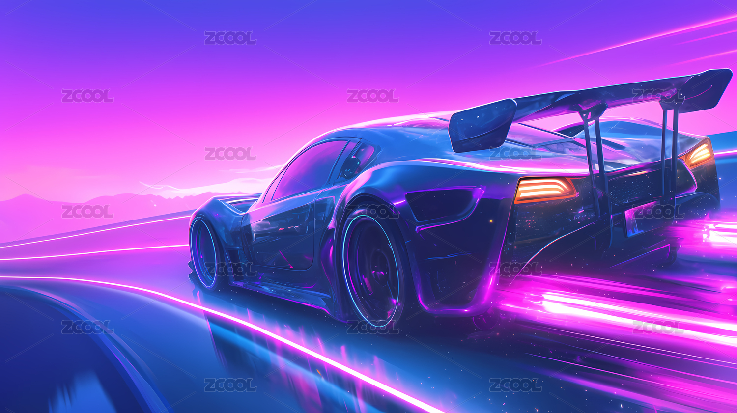 行驶中的新能源电动汽车跑车Y2K风格插画