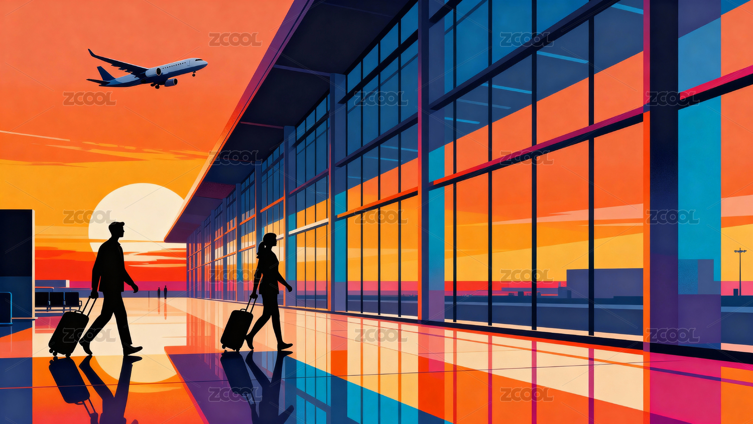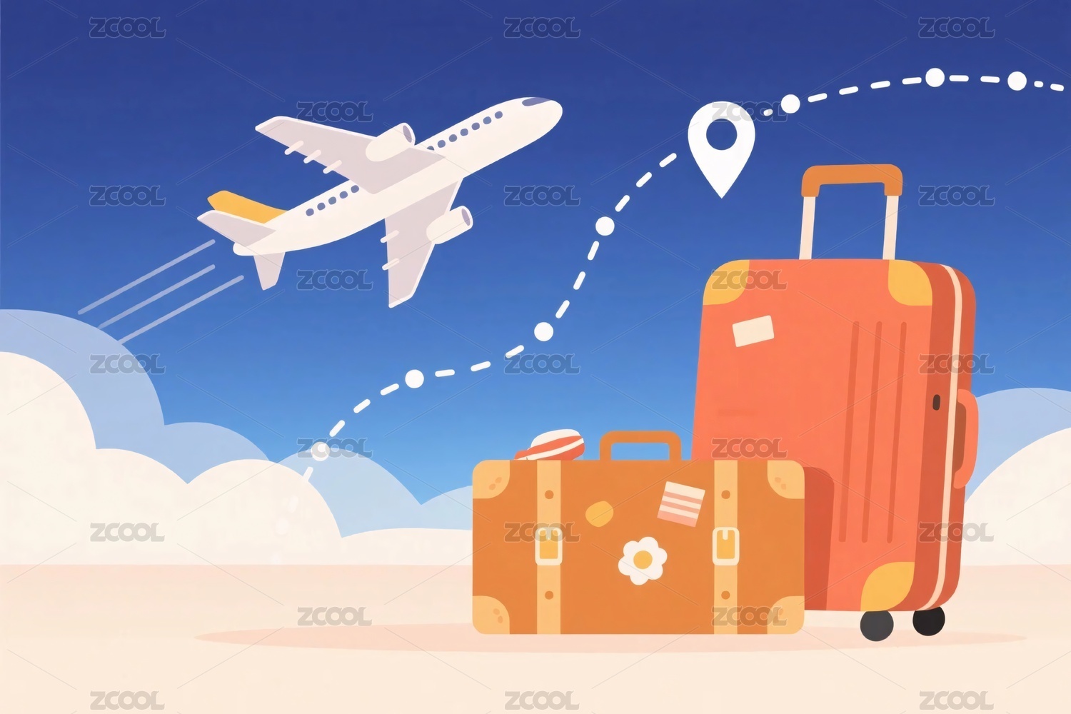 交通,插画,高楼,建筑,城市,飞机,旅行,云朵,女性,出行