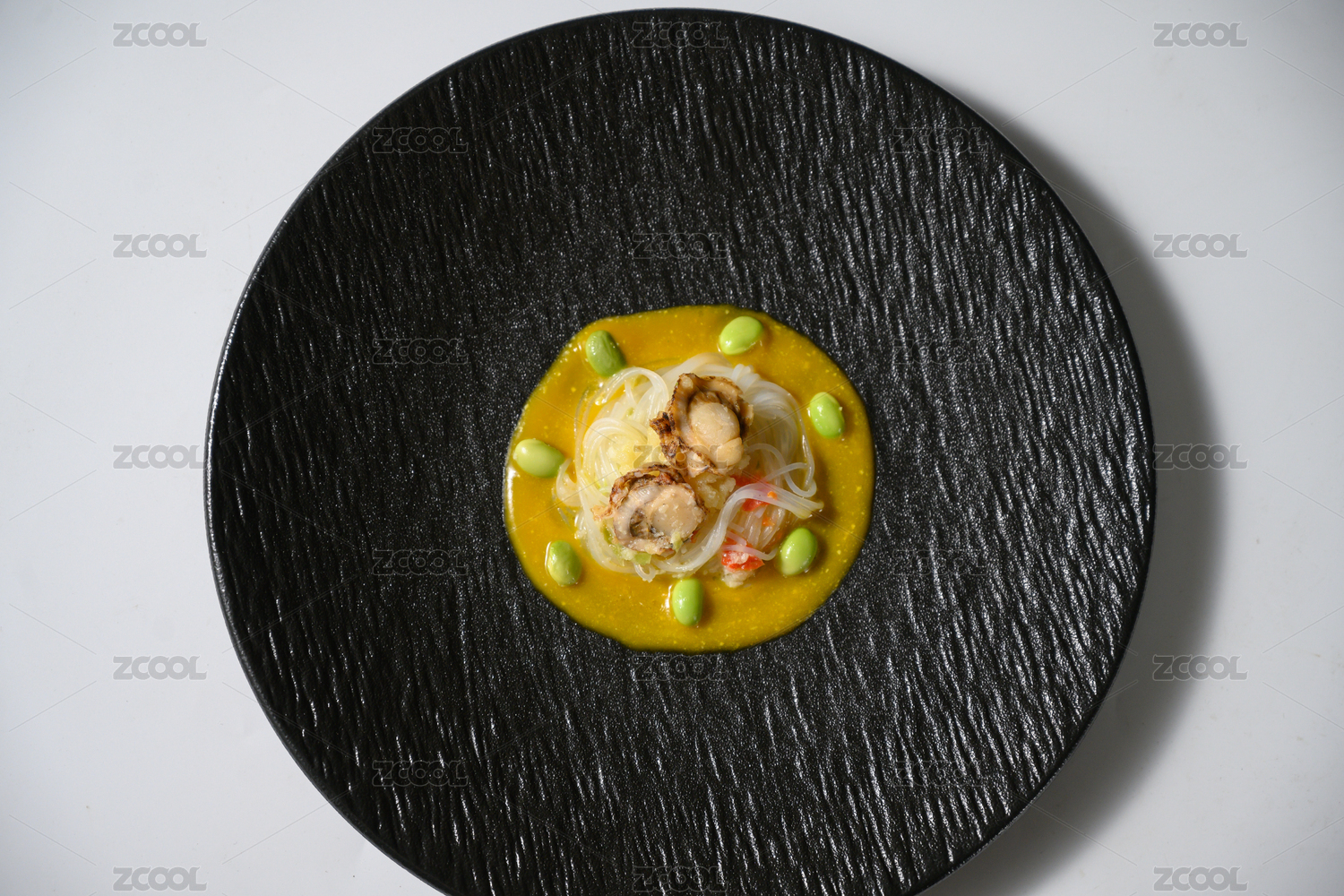 创意菜,融合菜,西餐,瑶柱,西班牙,带子,煎带子,摆盘,特写,豆芽