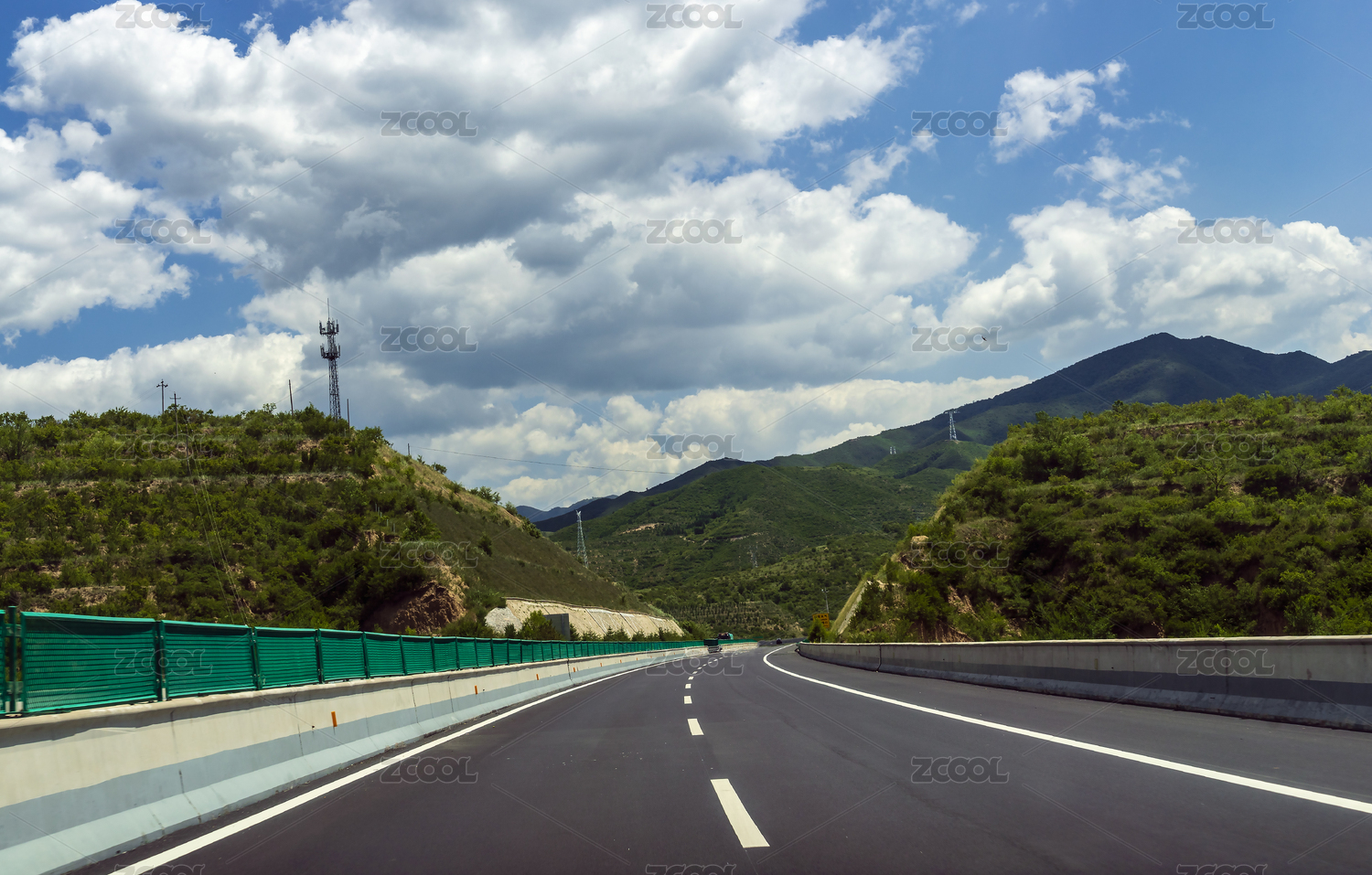 山区笔直的沥青公路在蓝天白云下伸向远方