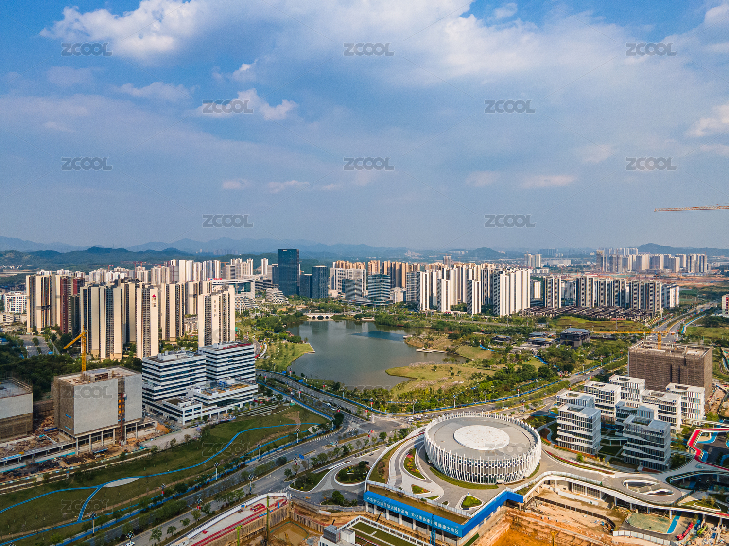 中国广东广州中新广州知识城建筑群城市天际线航拍